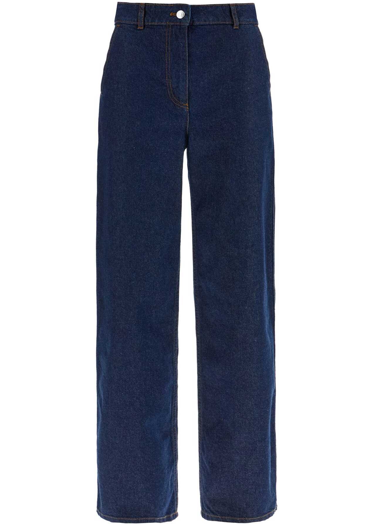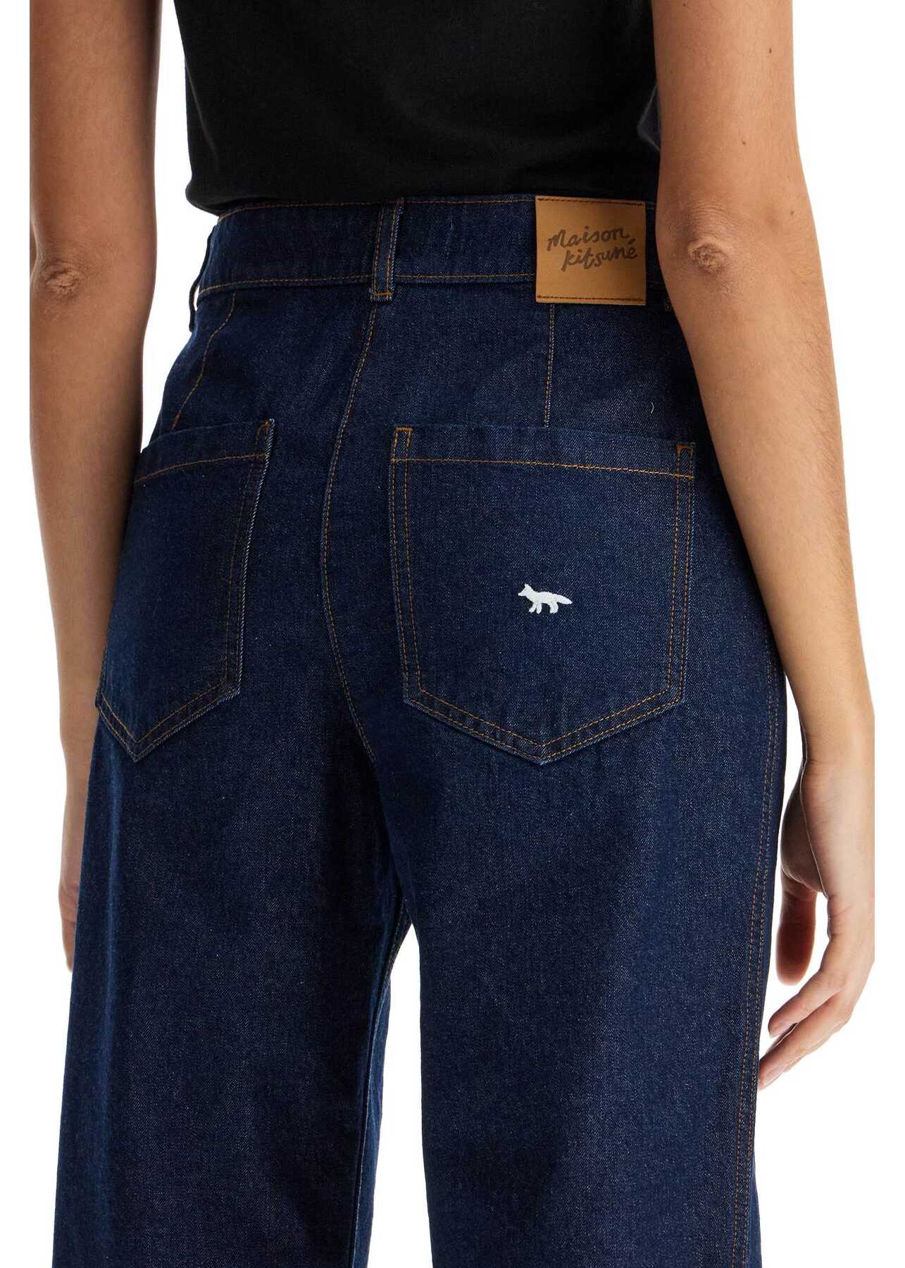 Maison Kitsuné jeans made of cotton denim, featuring a medium waist and straight leg design. Embellished with embroidered Profile Fox on the back. They have a hidden button and zip closure, two front pockets and two back pockets. Complete with a leather jacron patch on the back. The model is 177 cm tall and wears size 27.