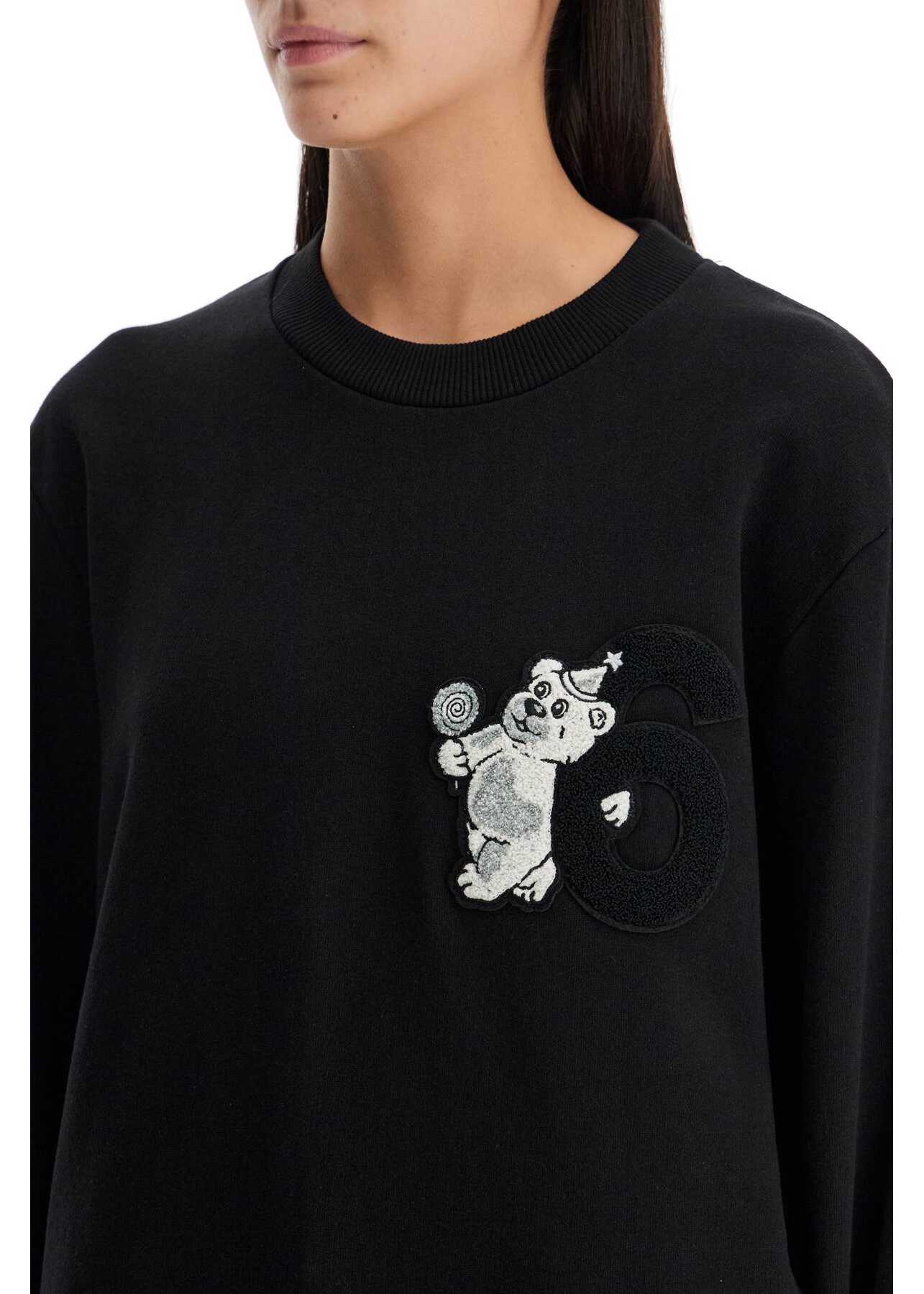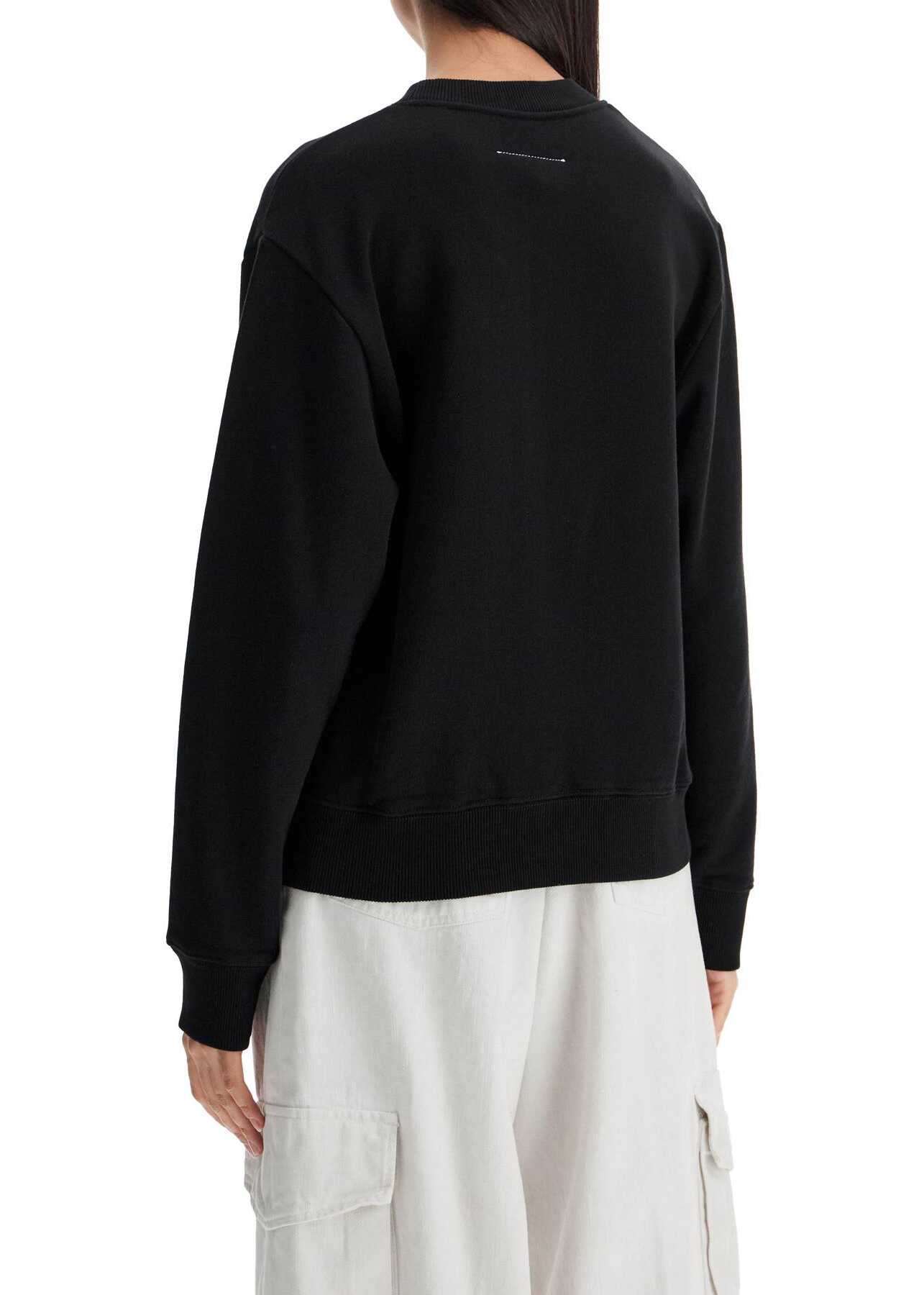 This MM6 Maison Margiela crew neck sweatshirt is made of brushed cotton jersey and features a Party Bear patch applied on the chest. It has ribbed edges, dropped shoulders, and a relaxed fit. The model is 177 cm tall and wears size XS.