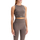This sporty crop top from Max Mara's Leisure line is made of soft lycra and features a printed logo on the bottom. It has a round neckline in the front and a V-neck in the back, with molded cups and ribbed finishes. The model is 177 cm tall and wears a size S.