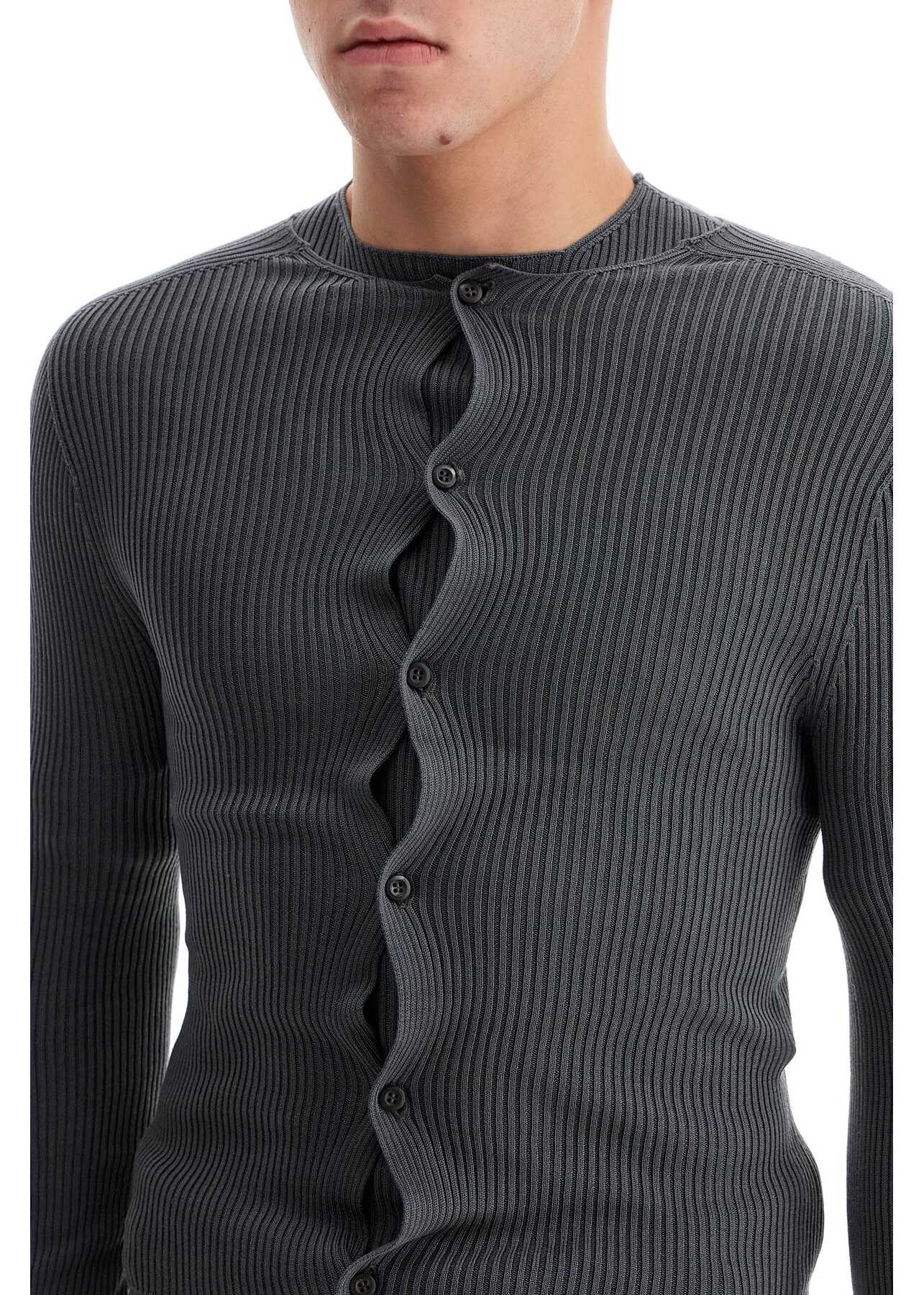 The RIER cardigan is made of lightweight ribbed silk knit with a round neckline, button closure and slim fit. The model is 182 cm tall and wears size M.