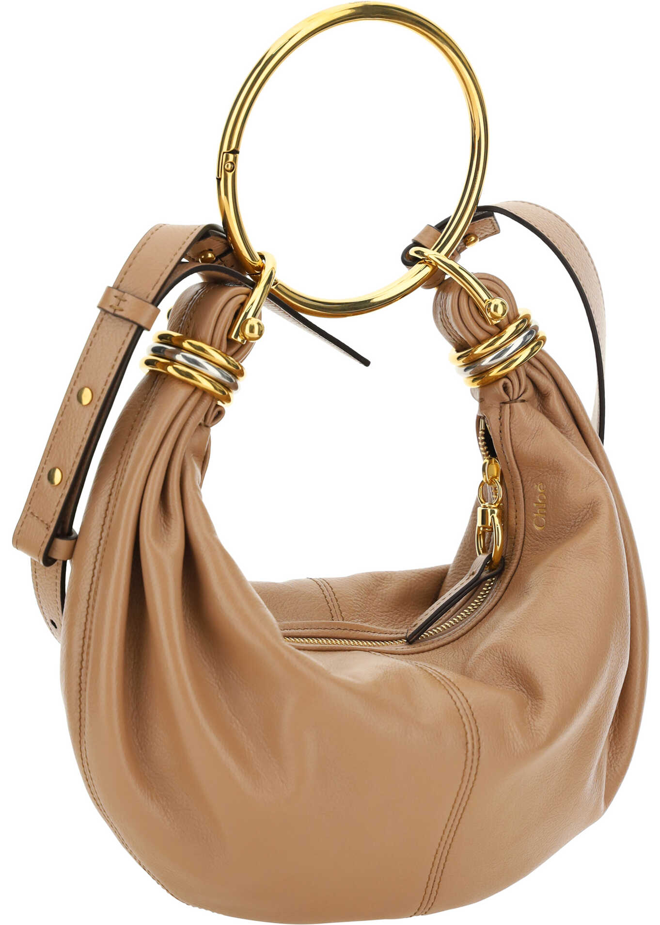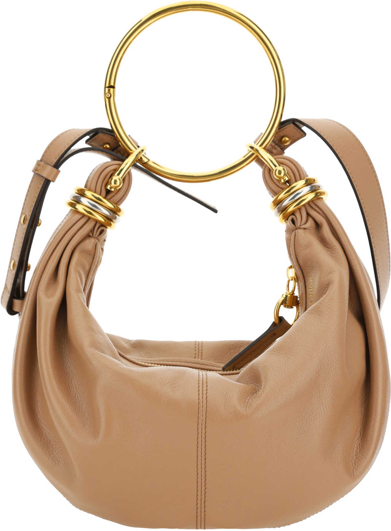 Leather Bracelet Handbag by Chloé, a round brass handle, an adjustable flat shoulder strap and removable top zipper closure, single interior compartment.