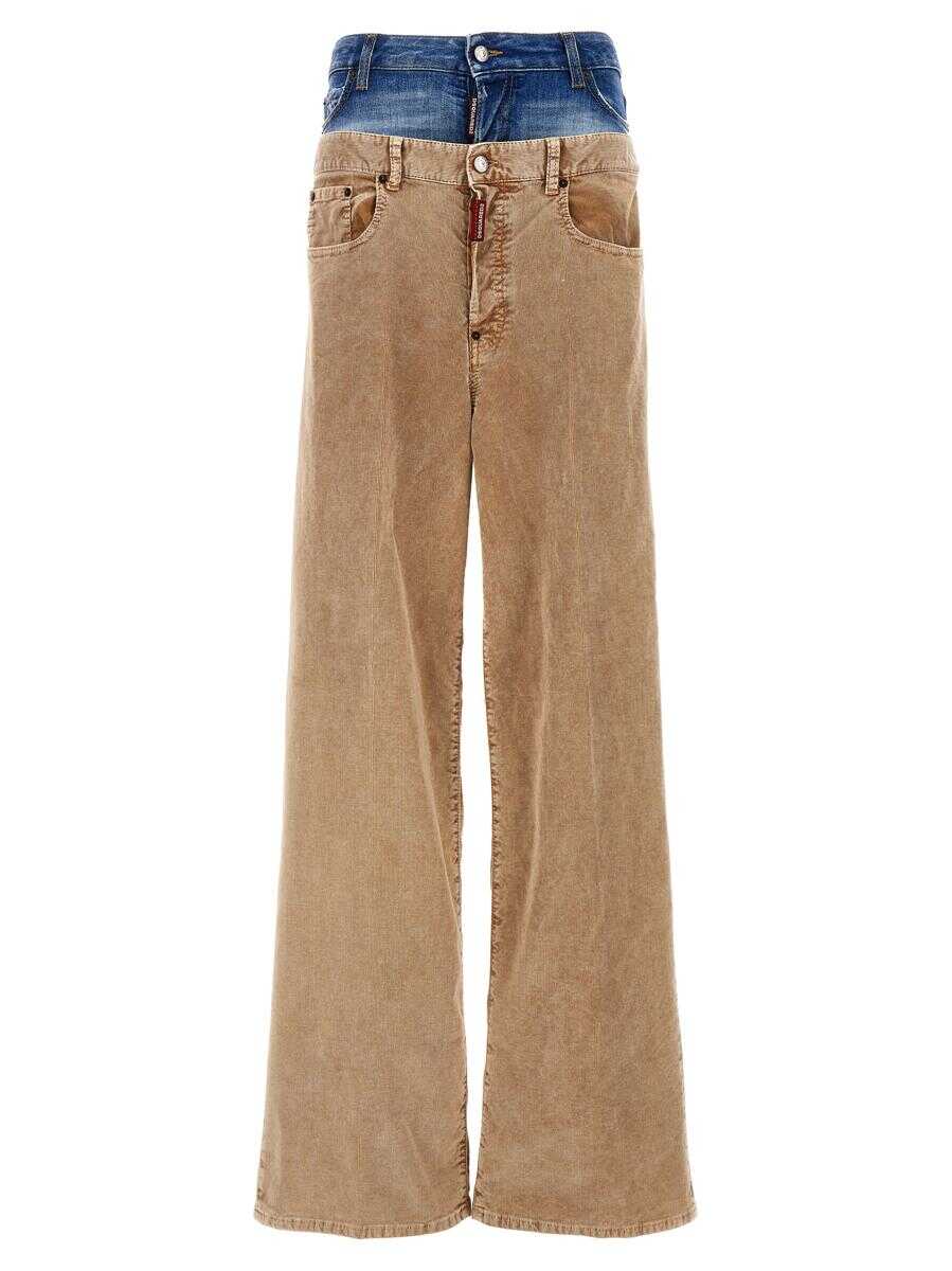 'Twin Pack' corduroy pants with denim insert, button closure, pockets, wide leg, leather logo tag
