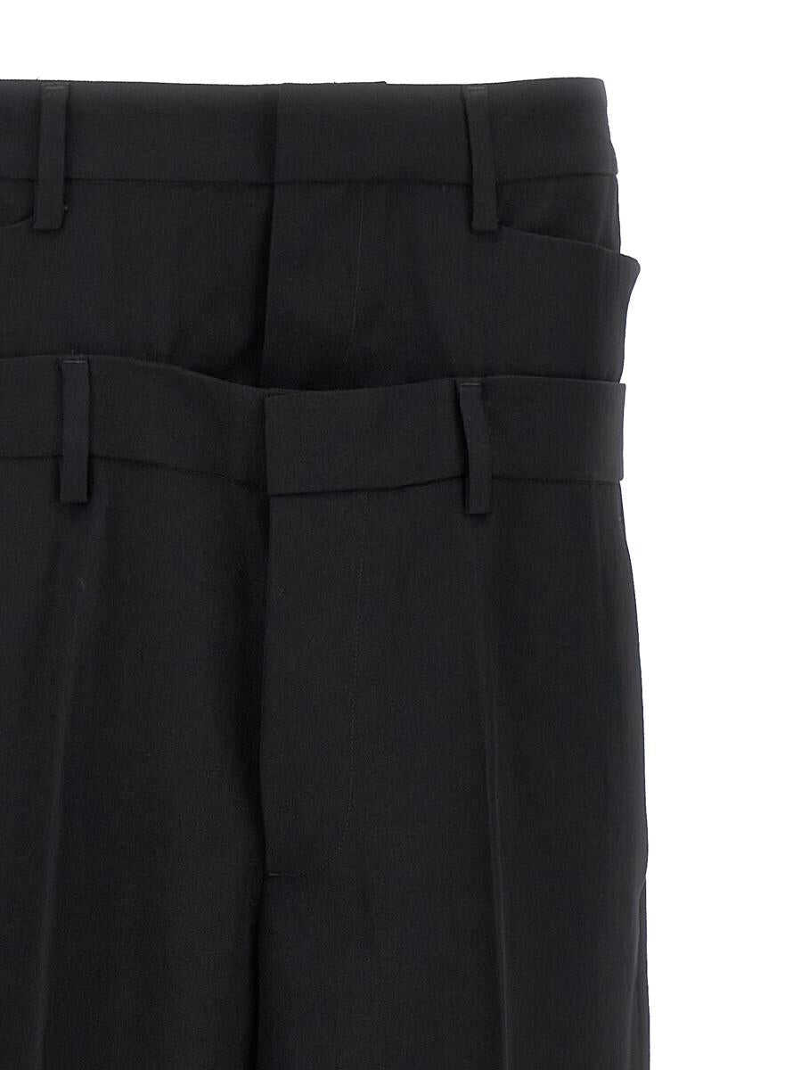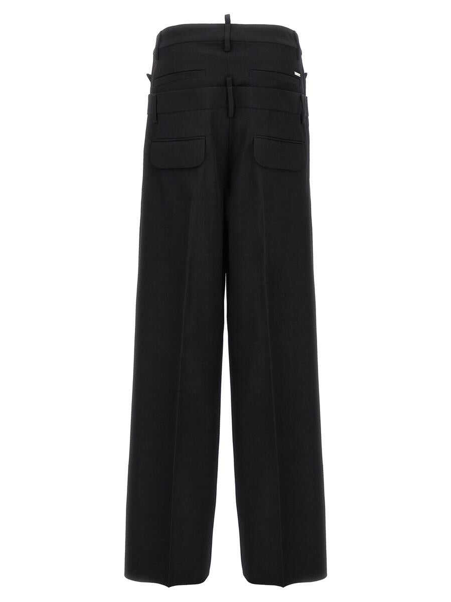 'Twin Pack' wool trousers with double waist detail, hook and button zip closure, pockets, wide leg