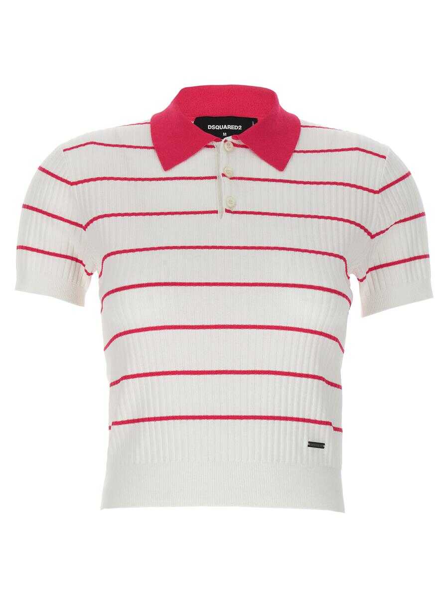 'Striped' polo shirt in ribbed viscose blend with striped print, short sleeves