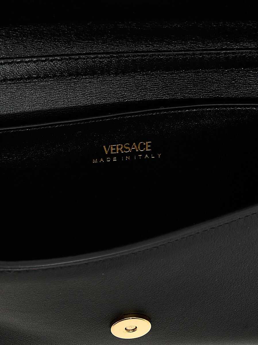 Leather wallet on chain with metal 'Medusa '95' detail, magnetic flap closure, removable chain shoulder strap