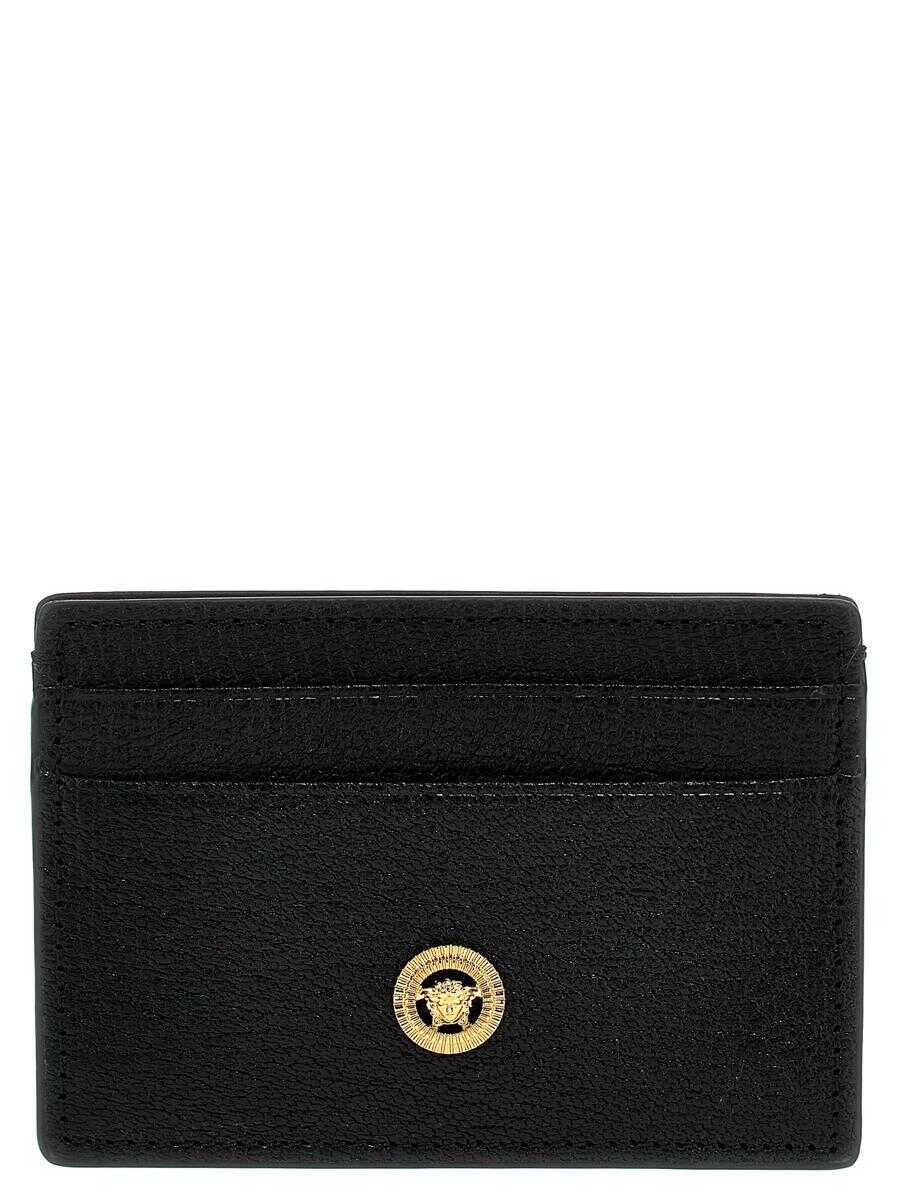 Leather card holder with front 'Medusa Biggie' appliqué