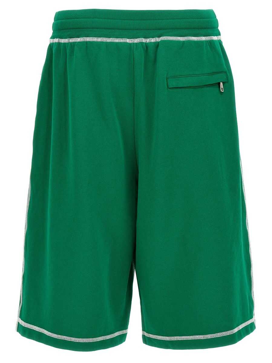 Bermuda shorts in cotton with print and embroidered logo, elastic waistband and drawstring, pockets