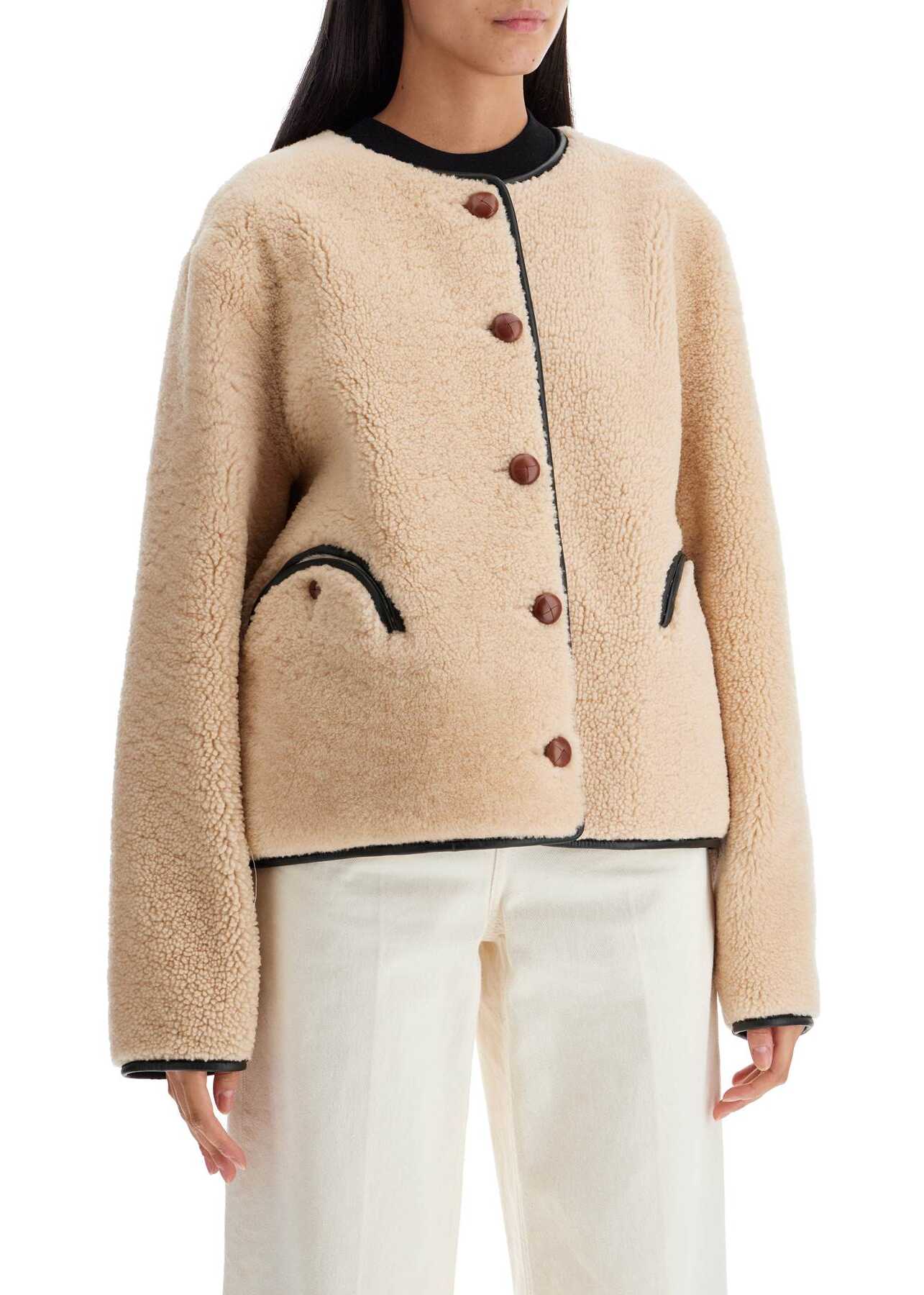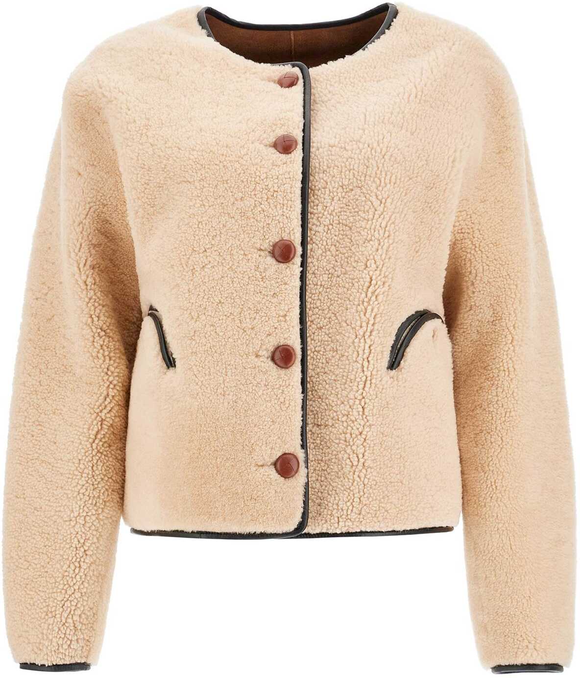 The Gliss Bolero by Blazé Milano is designed for an oversized fit and features a reversible design made of shearling. Contrast leather trims, button closure inspired by loden coats, and iconic Smiley front pockets on both sides. The model is 177 cm tall and wears size 1 Blazé Milano.