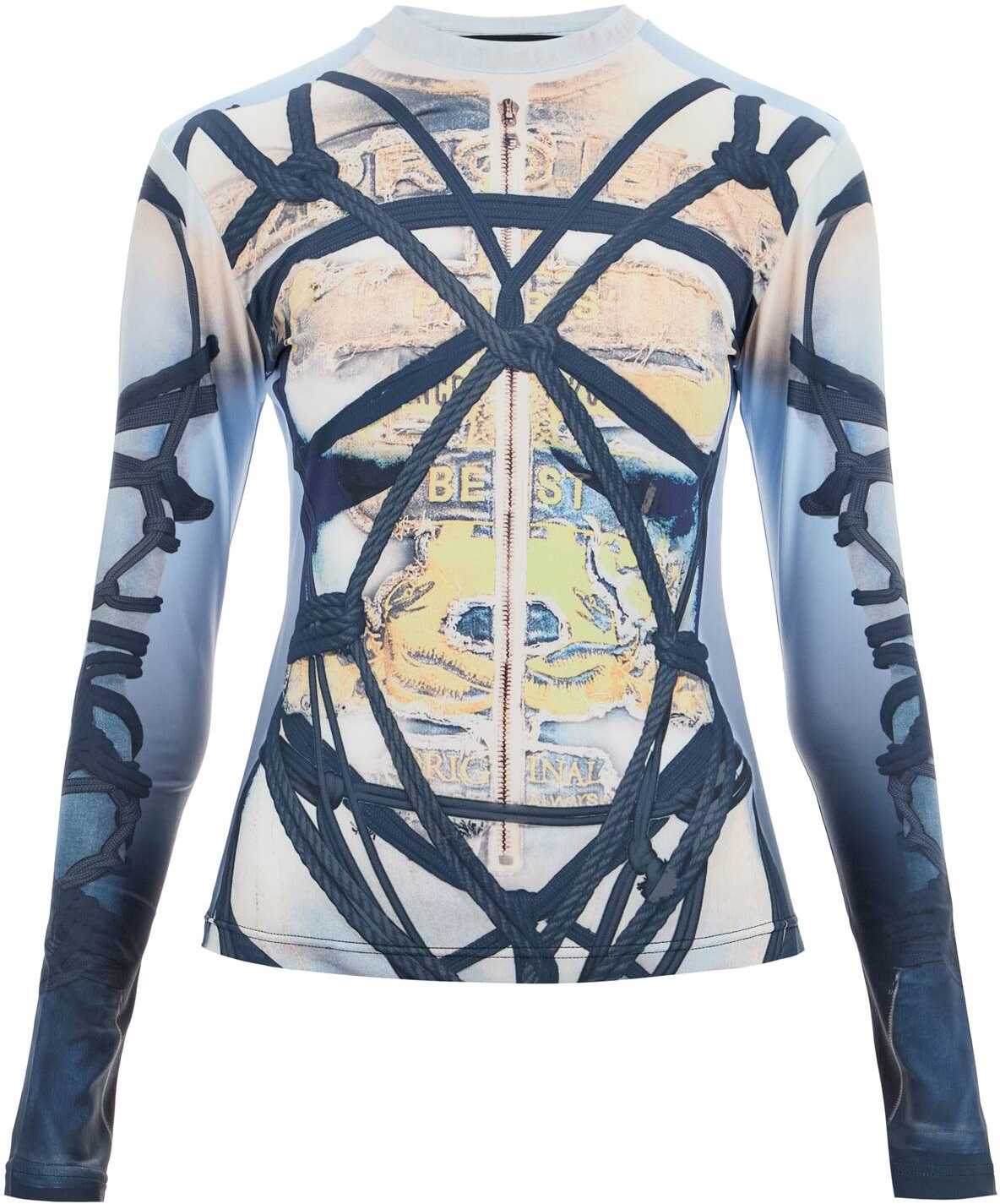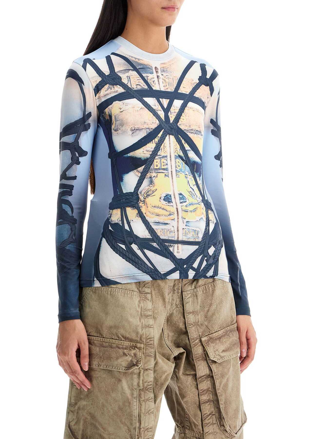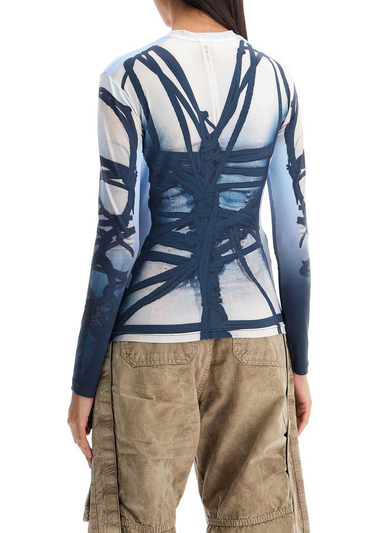 This Y/Project long-sleeved top is characterized by an all-over "Bondage" print. Made of lightweight stretch jersey, it has a fitted silhouette with a round neckline. The model is 177 cm tall and wears size S.