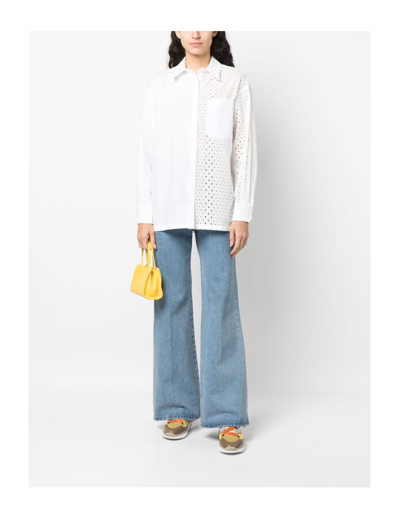 Kenzo's shirt offers an alternative take on traditional white shirting. This long-sleeve iteration has a panelled design - one half is deftly decorated with broderie anglaise that reveals miniature hints of skin.
