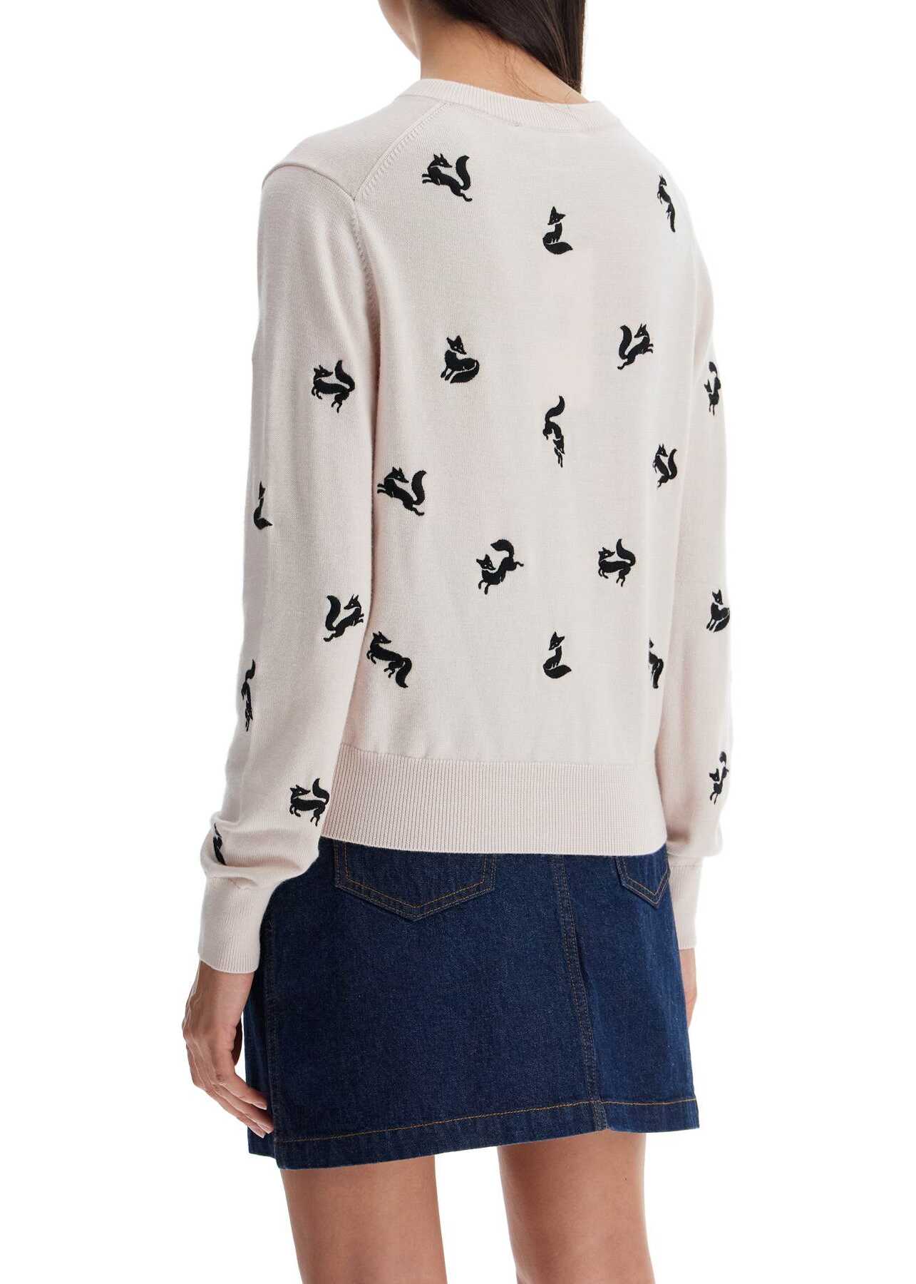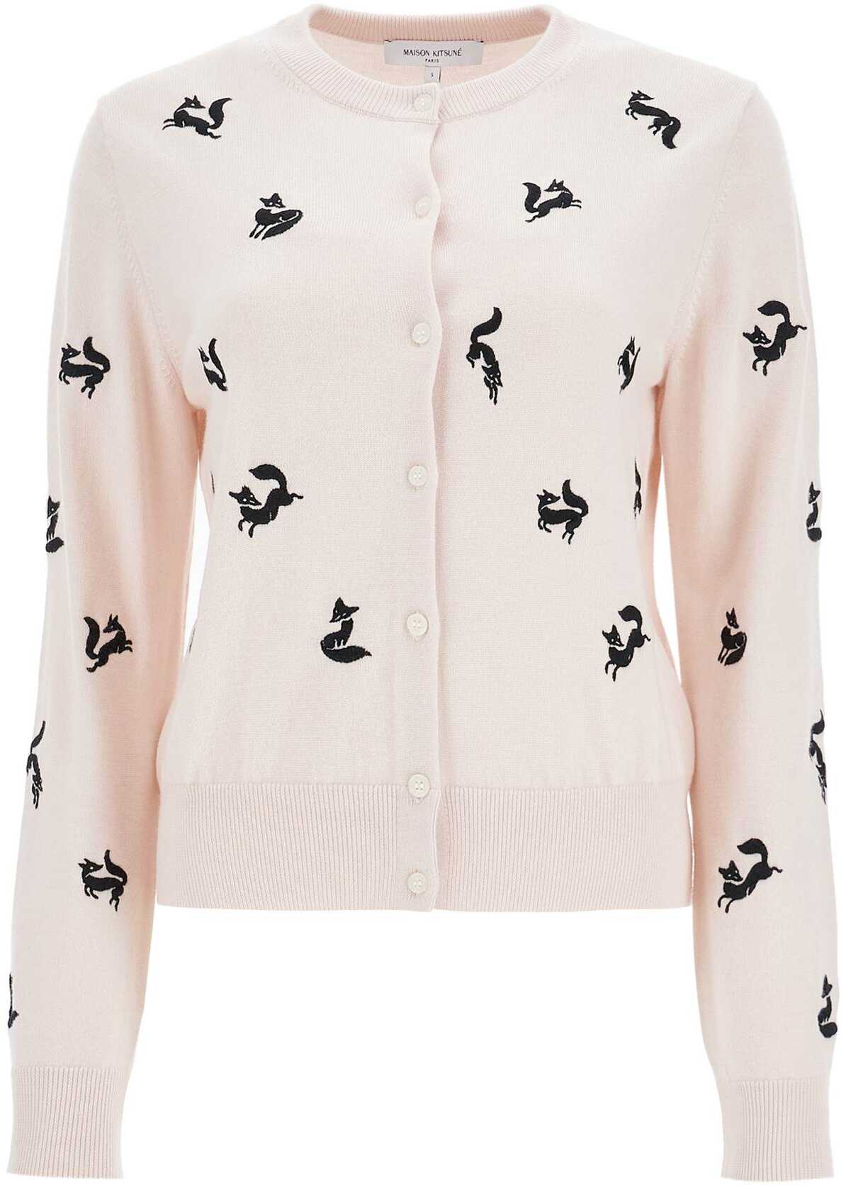 The Maison Kitsuné cardigan is made of a wool blend knit with an all-over Fancy Fox embroidery. It features a round neckline, button closure, ribbed edges and a regular fit. The model is 177 cm tall and wears size S.