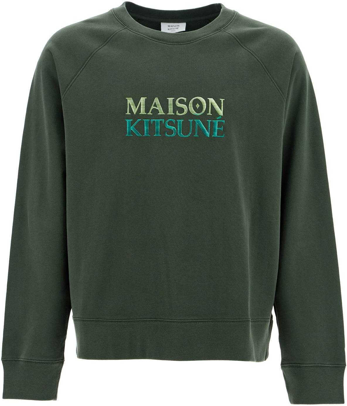 The Maison Kitsuné crewneck sweatshirt is characterized by an oversized fit with raglan sleeves. Made of medium weight brushed cotton jersey, it features a gradient embroidered logo on the front. Ribbed finishes on the edges. The model is 182 cm tall and wears size M.