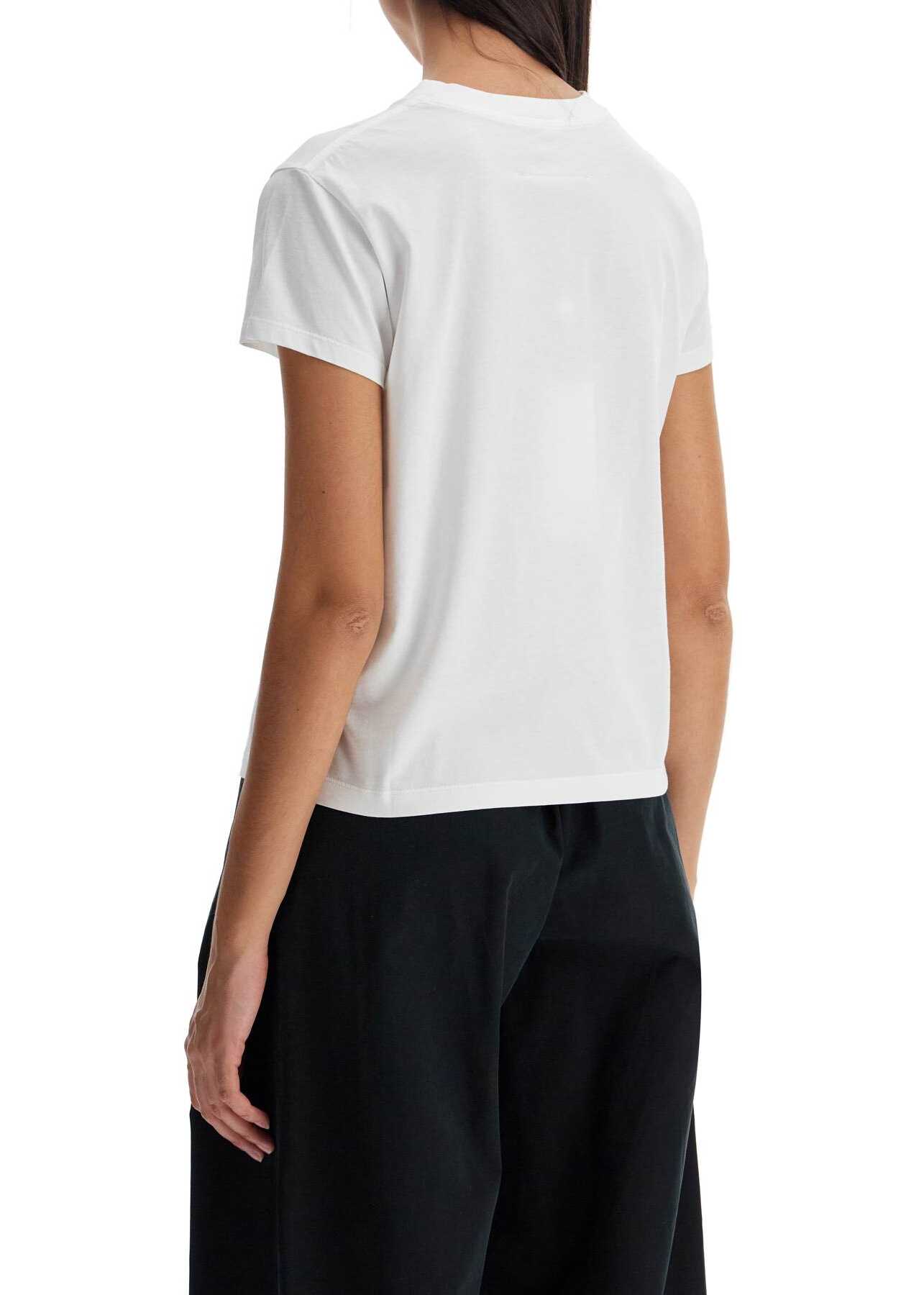 The MM6 Maison Margiela T-shirt is made of cotton jersey and features a Numeri Logo label applied on the chest. It has a round neckline with micro-ribbing and a regular fit. The model is 177 cm tall and wears size S.