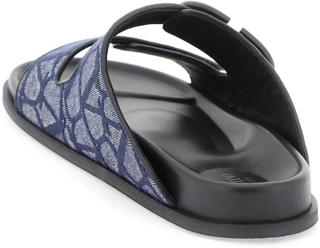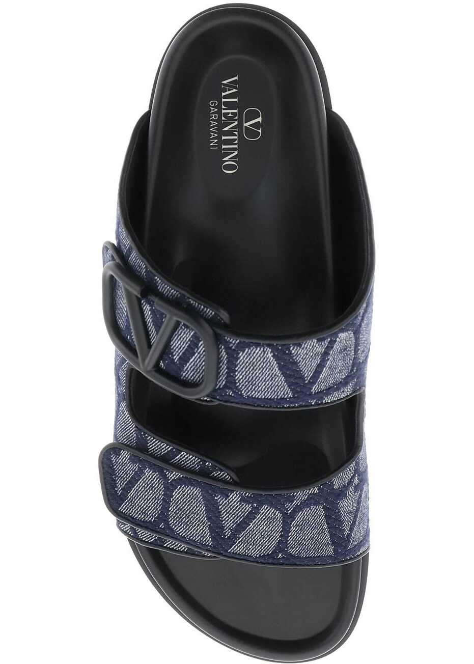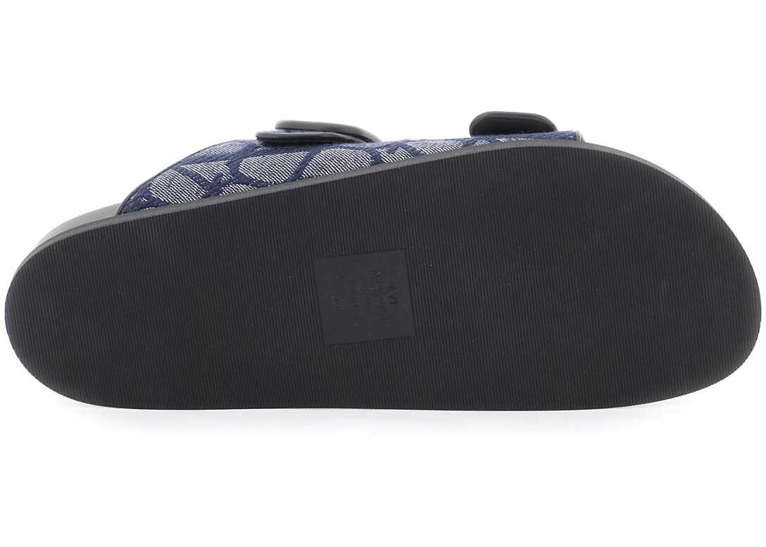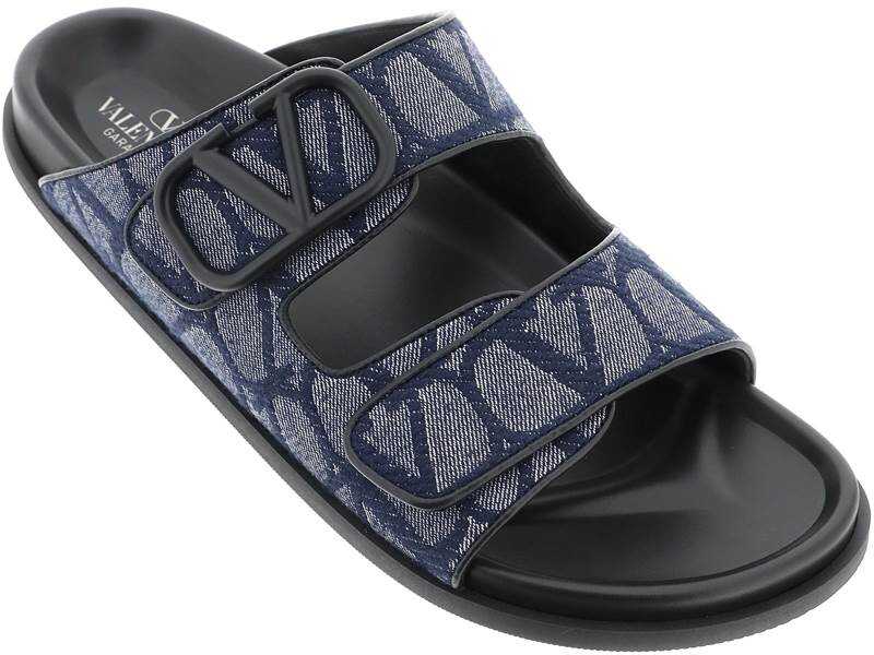 Slides by Valentino Garavani crafted in denim featuring iconic Toile Iconographe motif and applied VLogo Signature detail to one of the two bands. Leather anatomical footbed and rubber sole.