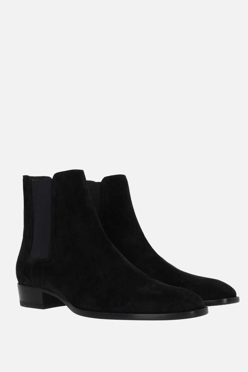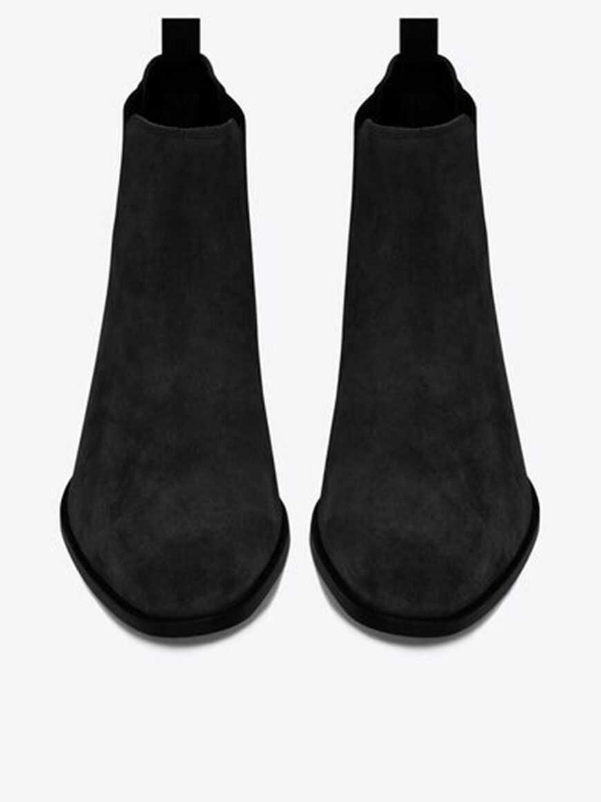 Saint Laurent's chelsea boots crafted in black suede. Featuring side elasticated bands, an almond-toe silhouette, leather lining and leather sole.