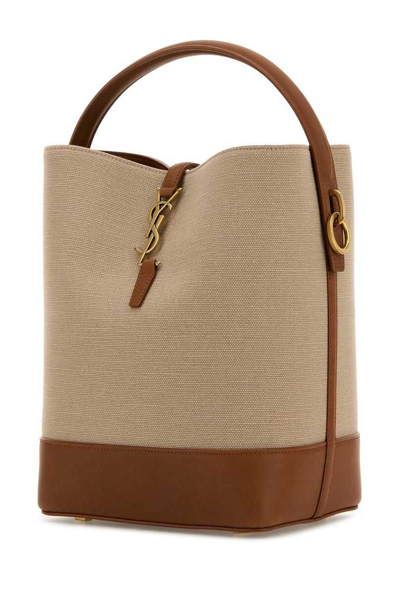 Two-tone canvas and leather Le 37 bucket bag Width: 20 cm Height: 25 cm Depth: 16 cm Handle height: 9 cm Min shoulder strap length: 37 cm Max shoulder strap length: 42 cm