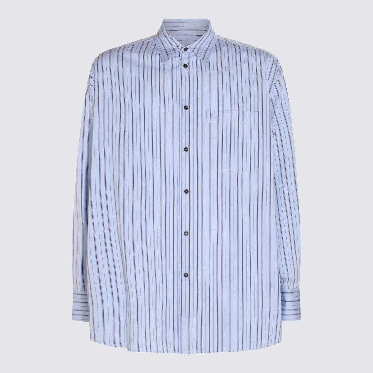Navy cotton stripe shirt from Off-White featuring all over stripe motif, button closure, logo signature at chest, relaxed fit and long sleeves. Size Type: AMERICA