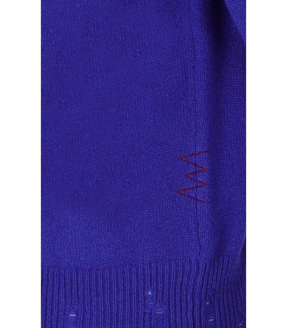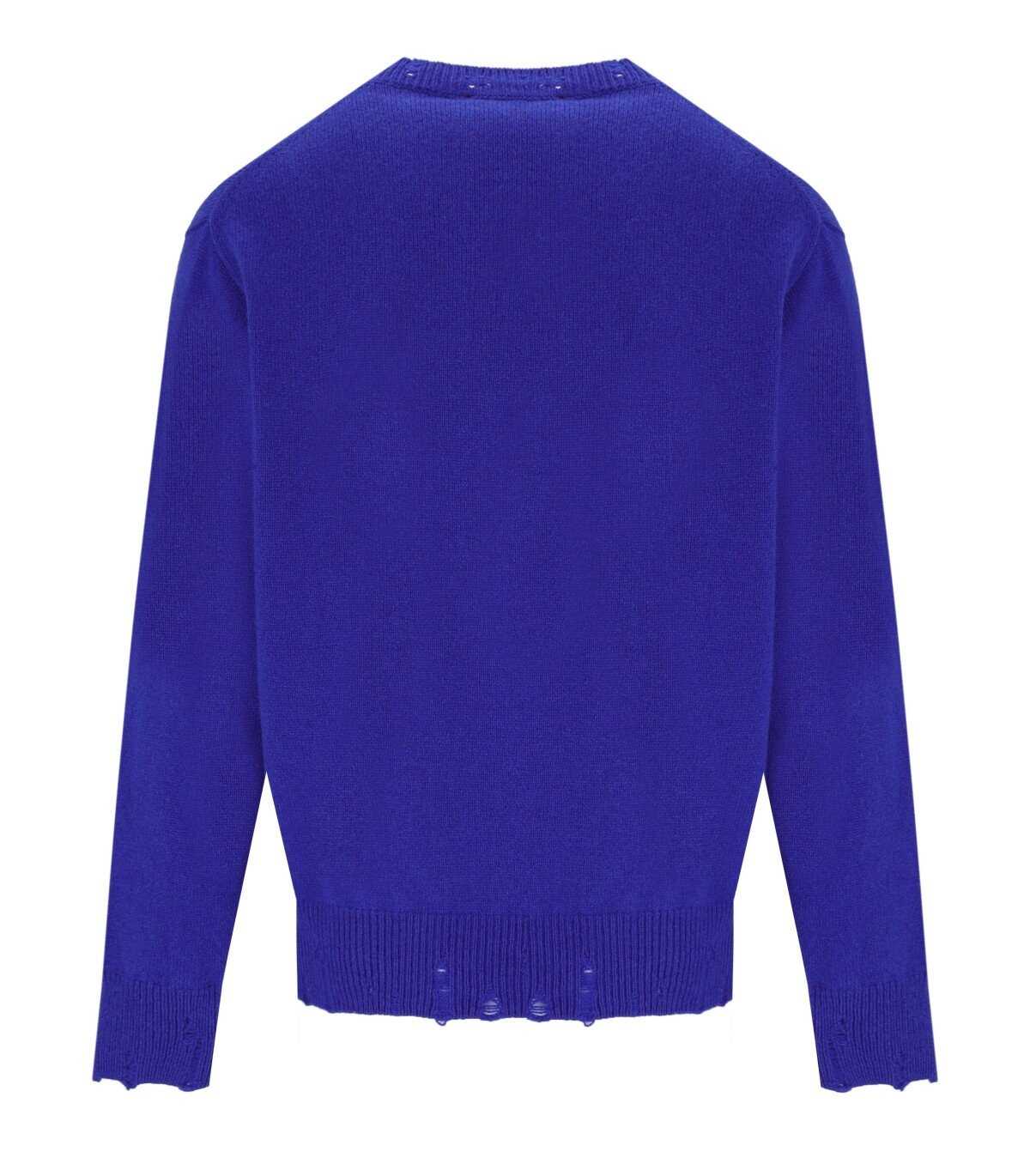 Amarànto jumper made of a wool-cashmere blend fabric, in electric blue. Characterized by soft long raglan sleeves, it features a crew neck, ribbed hem, and destroyed effect cuffs. The hem is further finished with a perforated effect. Regular fit.