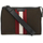 The Bally Code pouch is made of nylon with leather trims and features the iconic Bally Ribbon fabric appliqué on the front. It has a zip closure with a large pull tab that doubles as a wrist strap, and the interior is lined with one open pocket and one zippered pocket. The metallic accessories have a steel finish for added durability.
