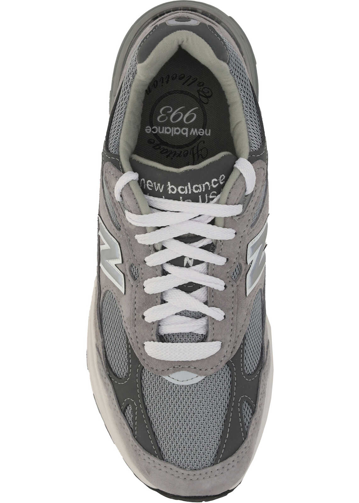 Leather Sneakers by New Balance mesh upper with suede detailing, lace-up front closure, elongated toe on front with reinforcement, raised and reinforced rubber sole, contrasting iconic brand monogram on side panels, contrasting logoed front tab.
