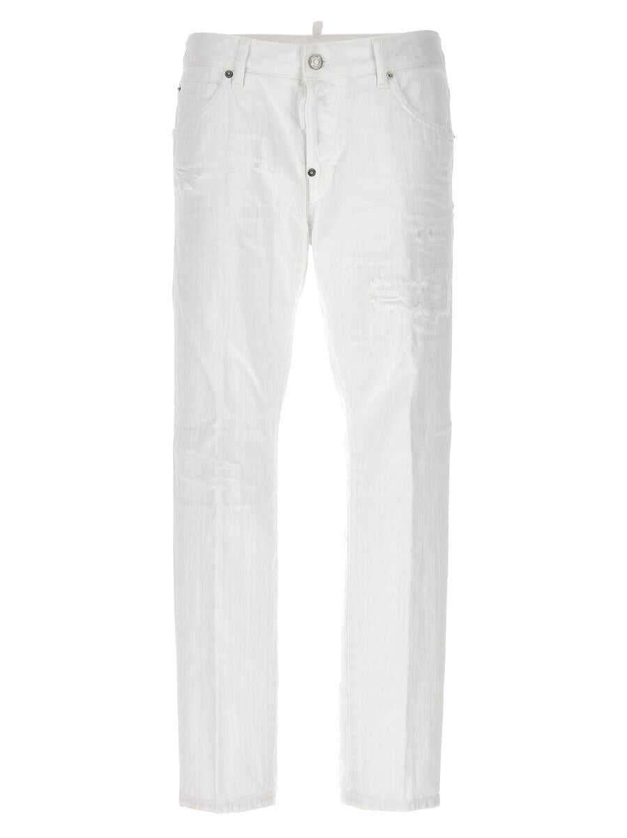 'Cool Girl' cotton denim jeans with used-effect details, button closure, five pockets, leather logo tag