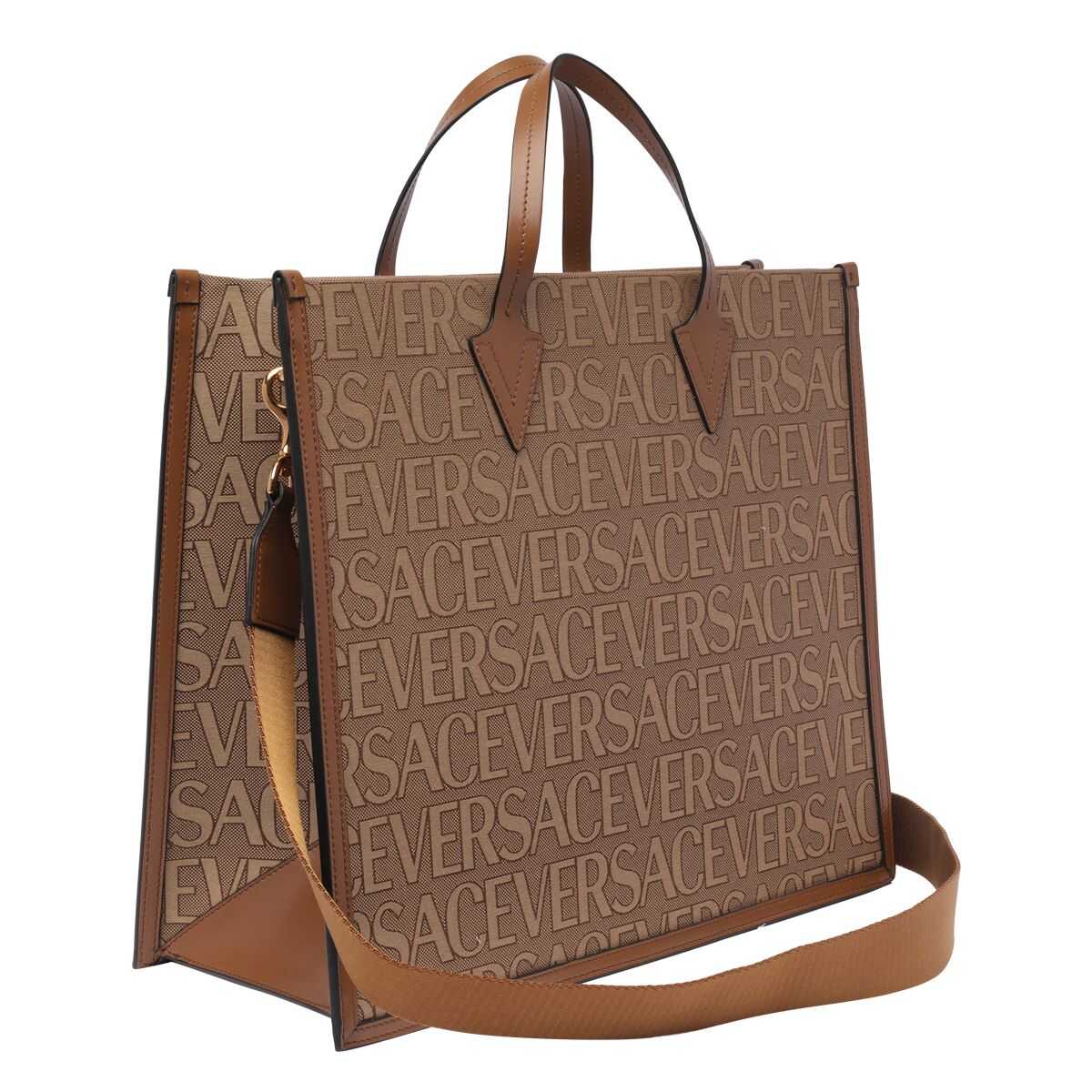 Embroidered canvas Versace Allover shopping bag Width: 42 cm Height: 35 cm Depth: 16,5 cm Handle height: 11 cm Min shoulder strap length: 45 cm Max shoulder strap length: 80 cm