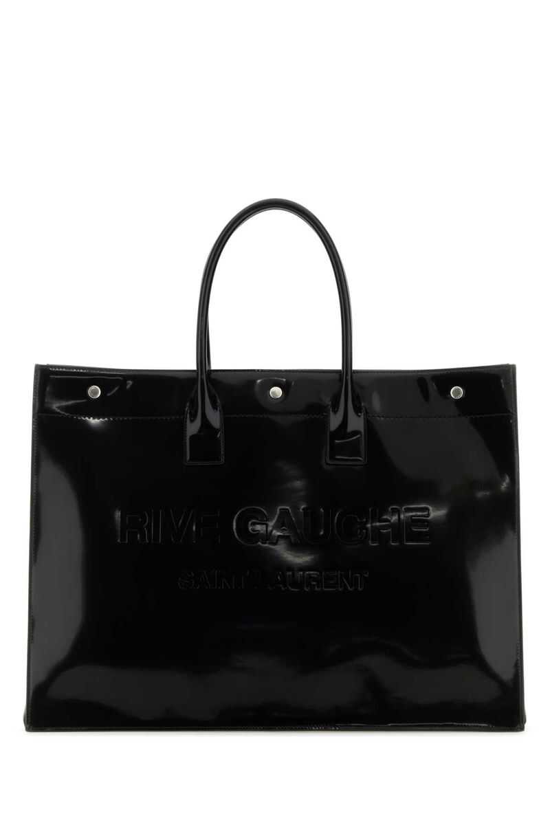 Black leather large Rive Gauche shopping bag Width: 48 cm Height: 36 cm Depth: 11 cm Handle height: 15,5 cm
