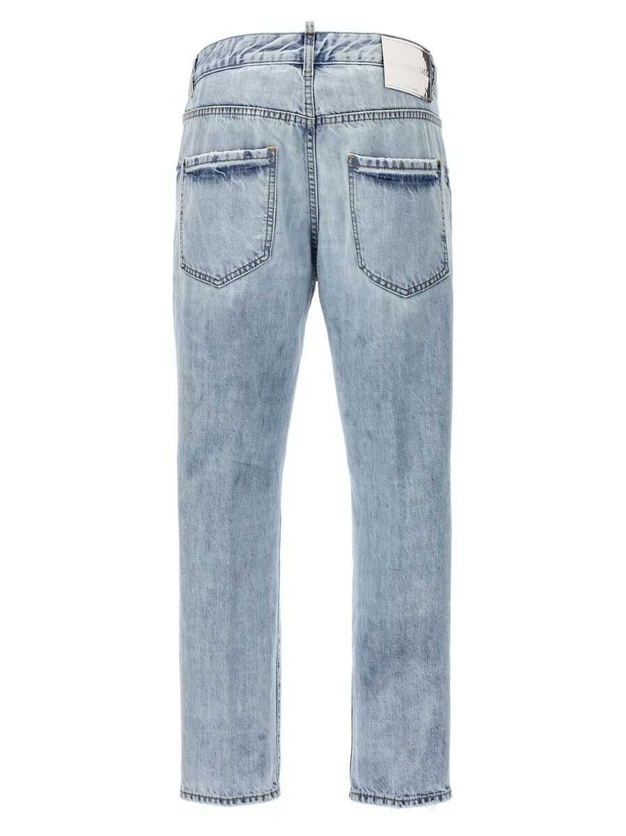 'Cool Girl' cotton denim jeans with distressed details, button closure, five pockets, metal leather logo tag