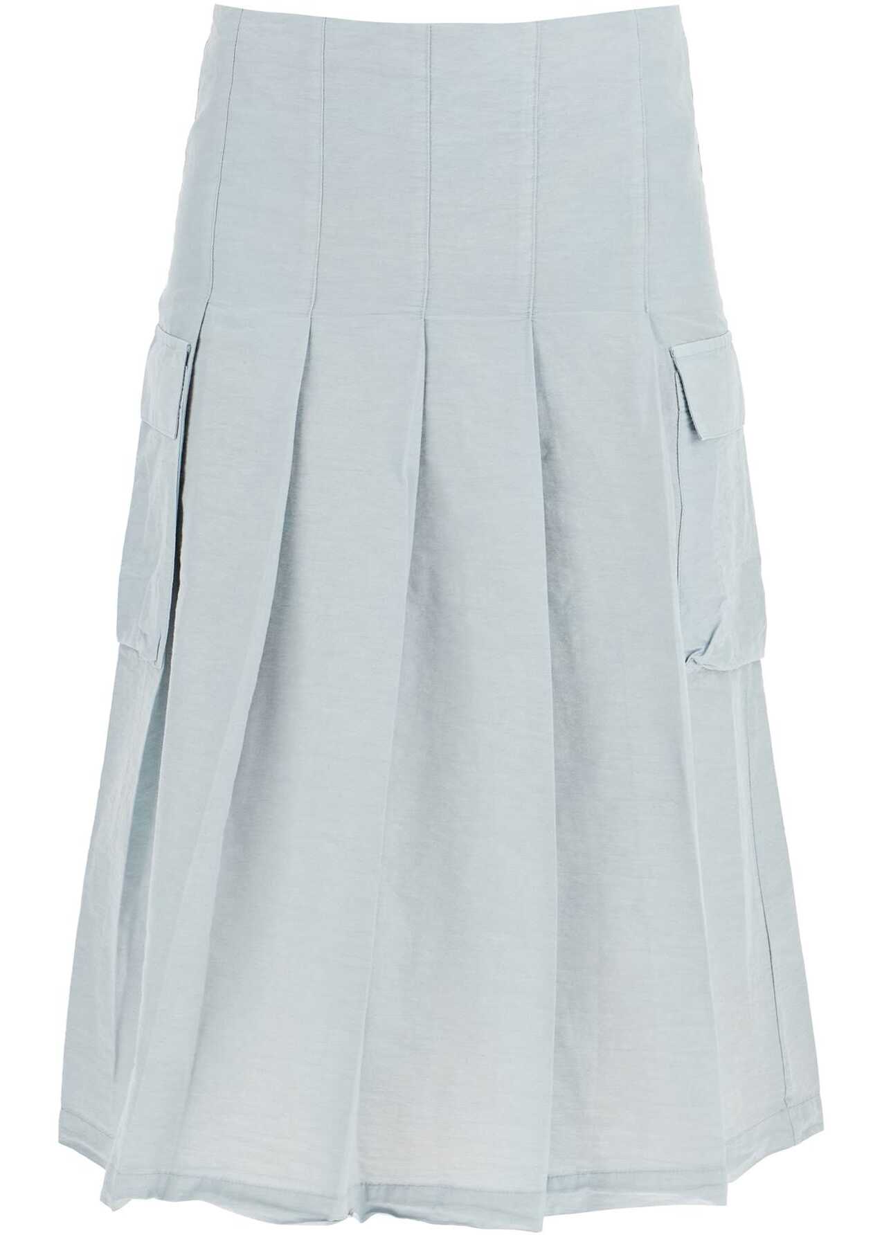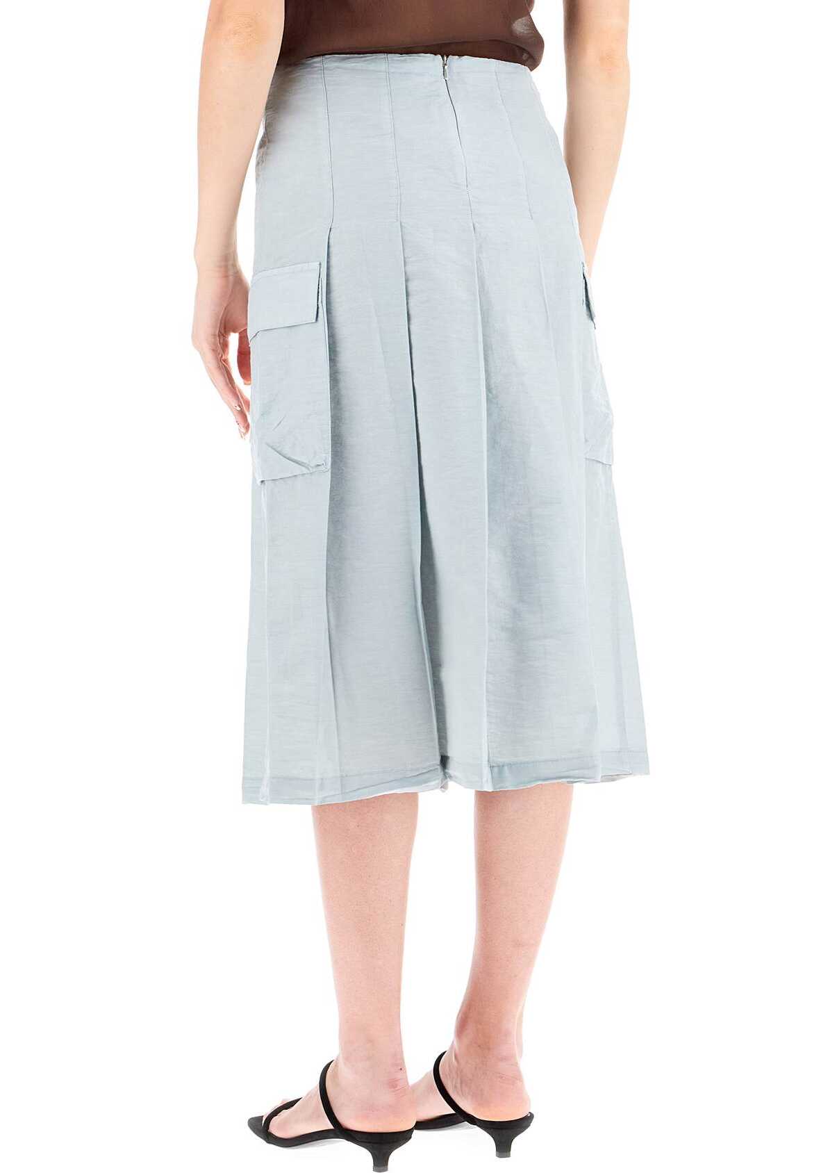 This Paloma Wool midi skirt features a low-waisted design with pleats and a fitted cut on the sides. Made from a blend of linen, cotton, and nylon, it also has two cargo-style pockets on the sides and an invisible zip closure at the back.