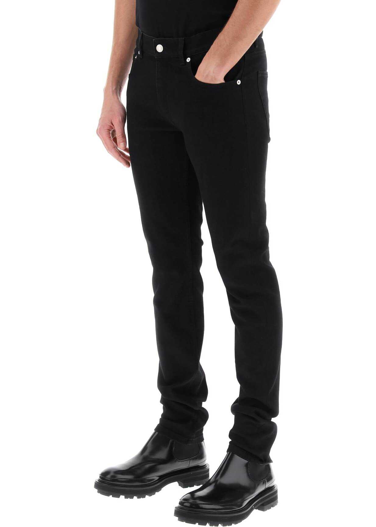 These Alexander McQueen five-pocket jeans are made of black stretch denim with a low-waisted, slim fit. Decorated with the McQueen Graffiti print on the back pocket, they are finished with belt loops and a zip and button closure.