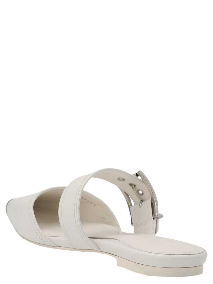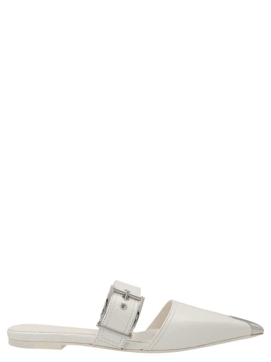 Punk' leather mules with strap detail with buckle, pointed toe and a silver metal toe cap