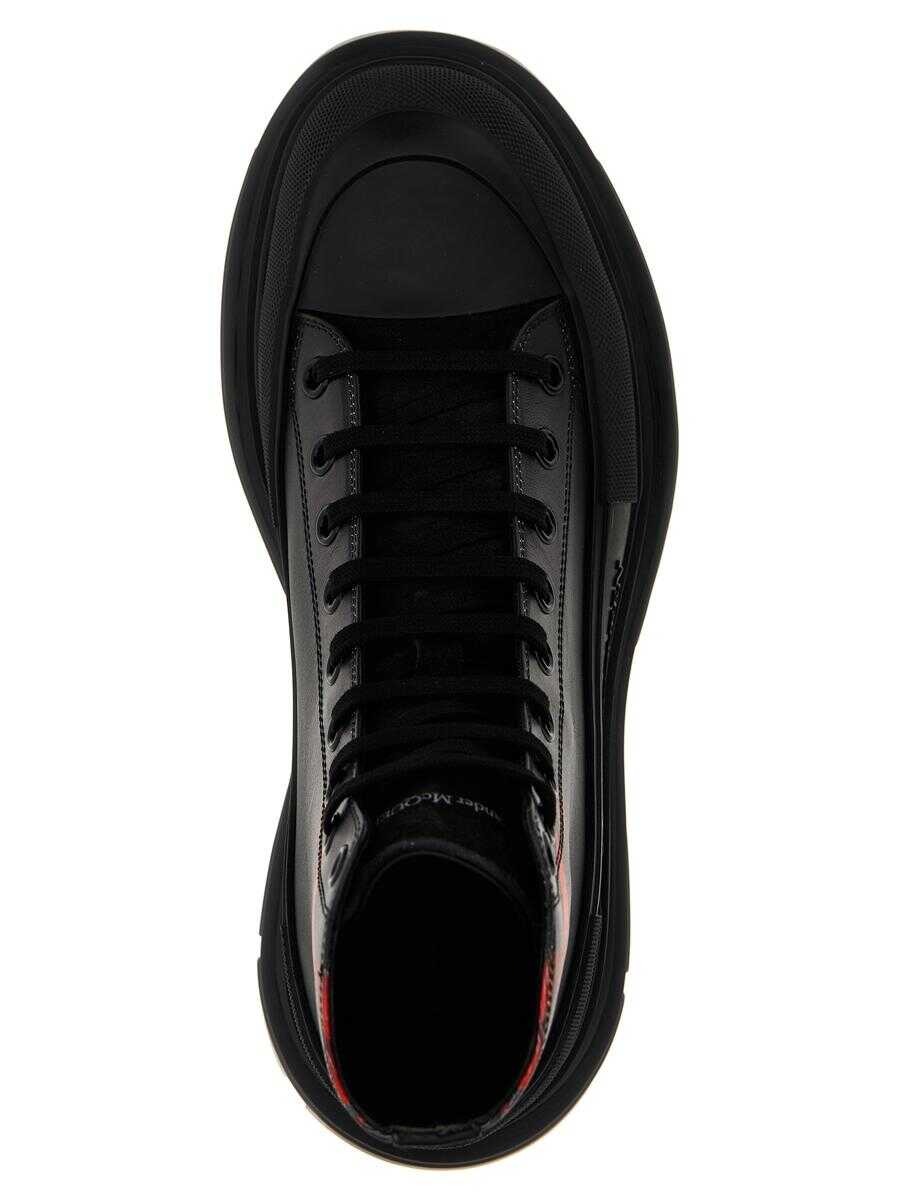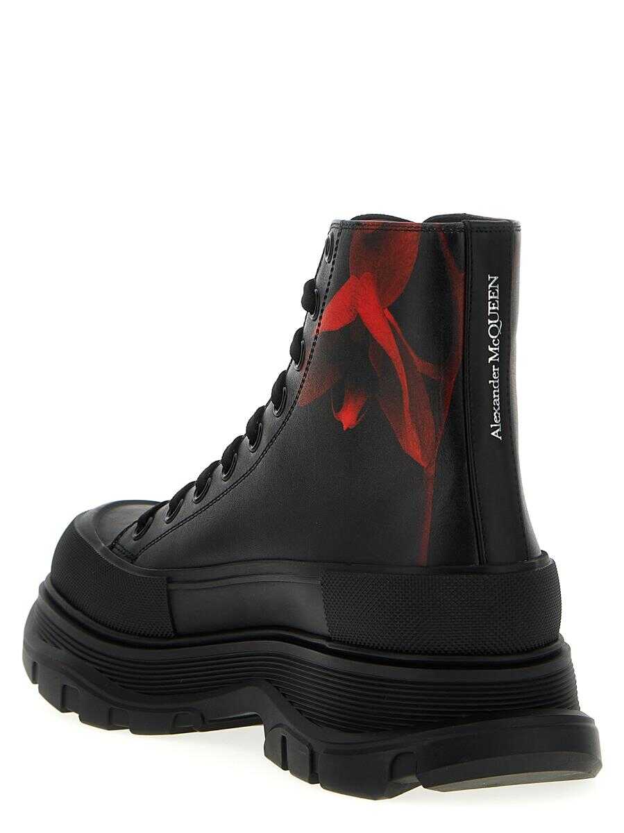 'Tread Slick' leather ankle boots with floral print, laces closure, rubber sole