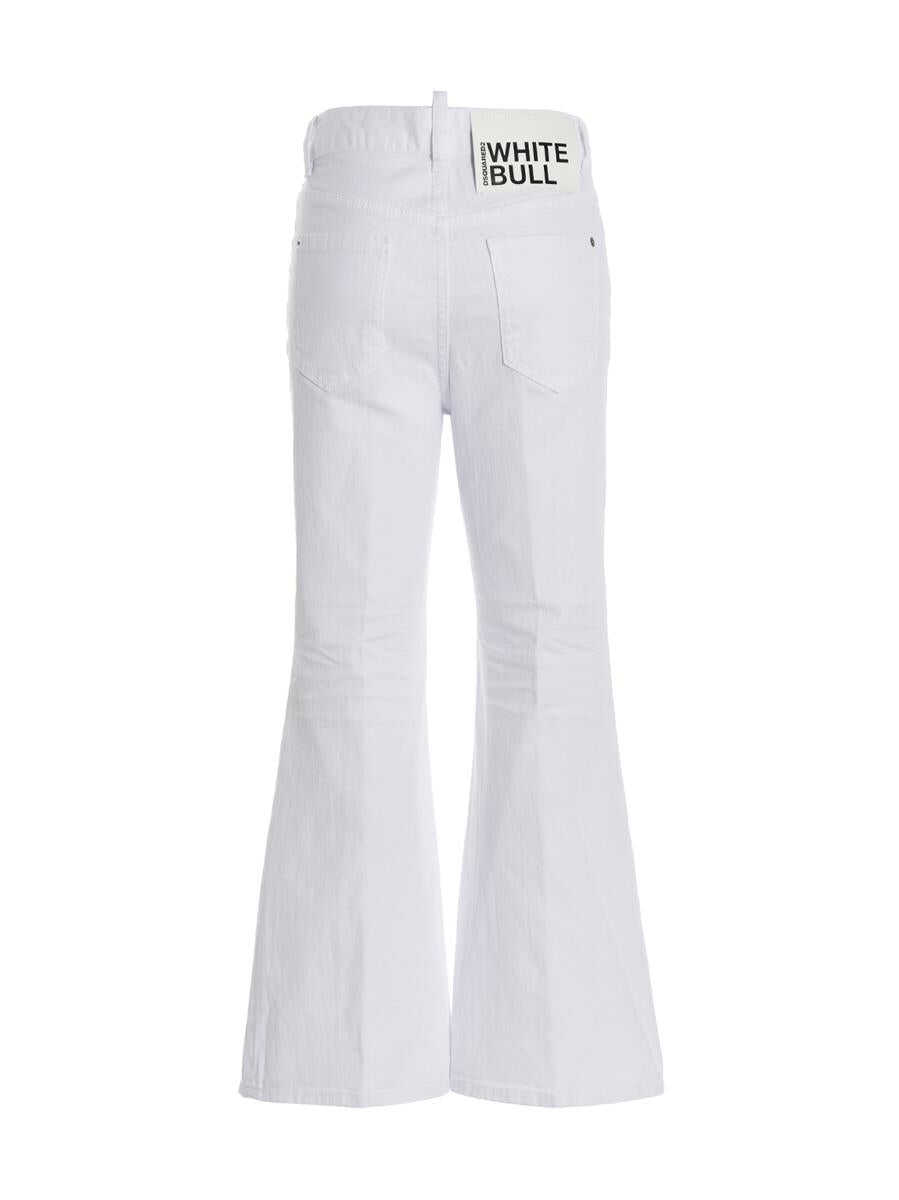 'Super Flared Cropped' cotton denim jeans with zip and button closure, five pockets, leather logo tag, flared leg