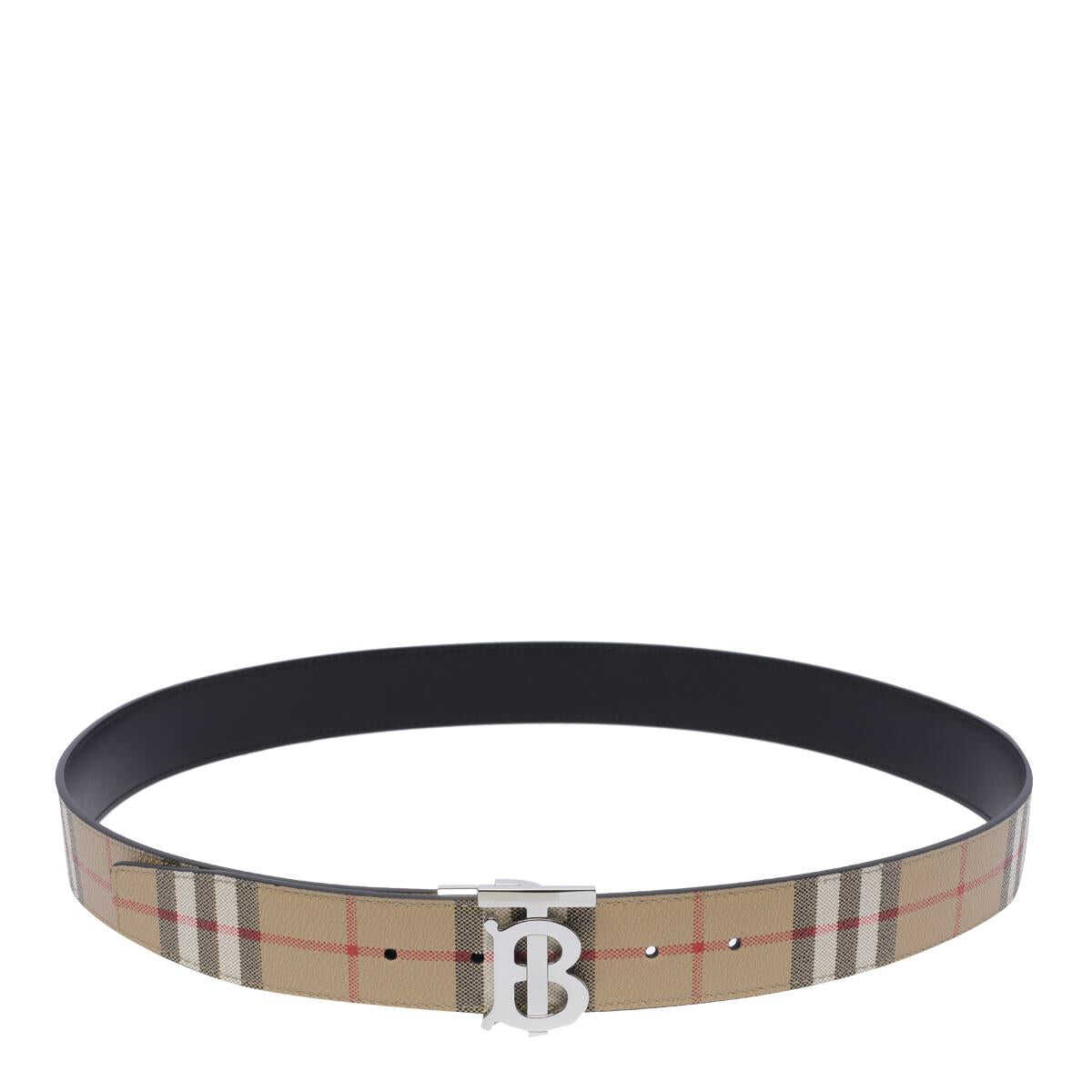 Burberry Beige Reversible Tb Check Belt, Frontal Logo Buckle Closure, Check Motif, 3,5 cm