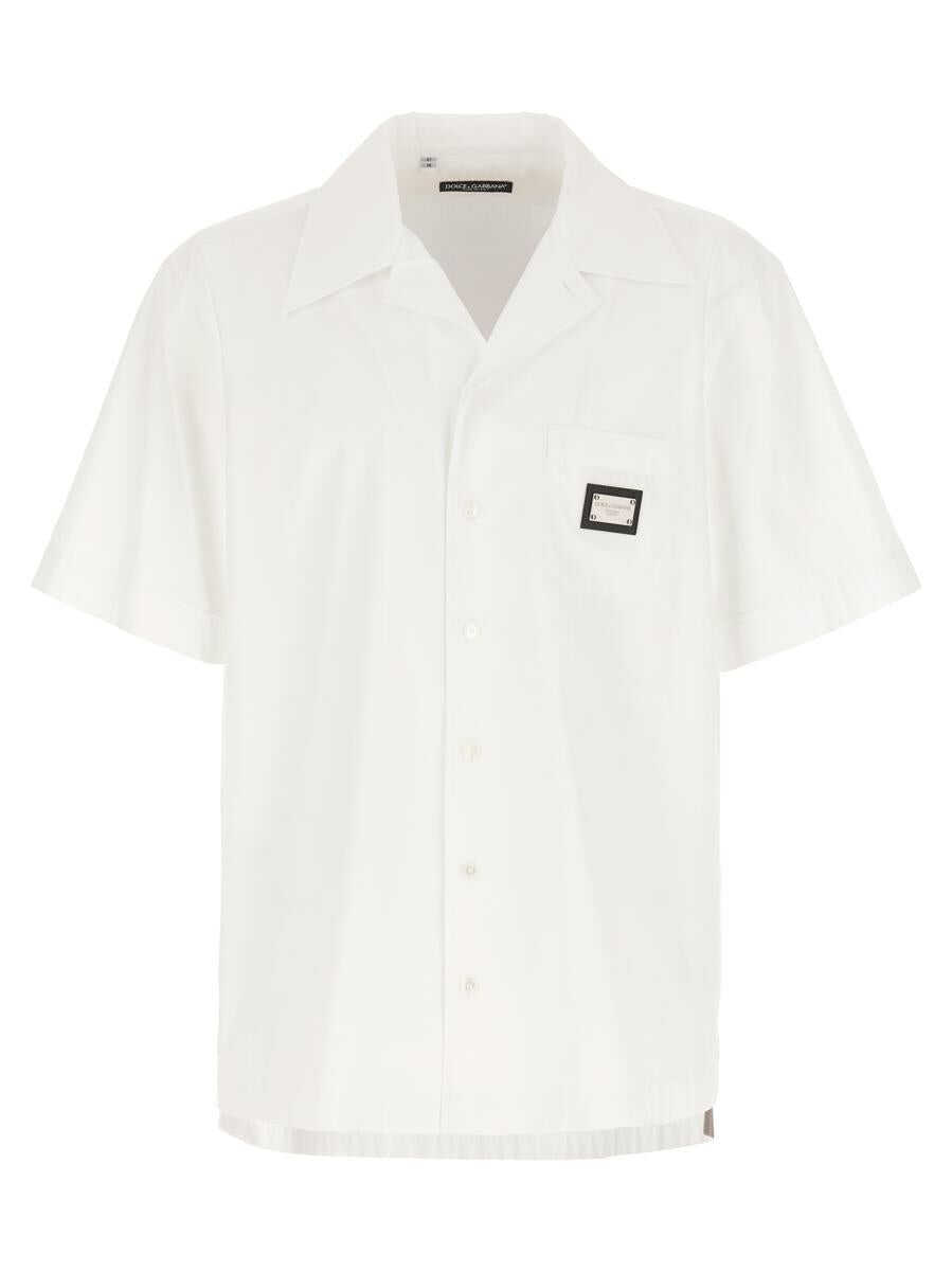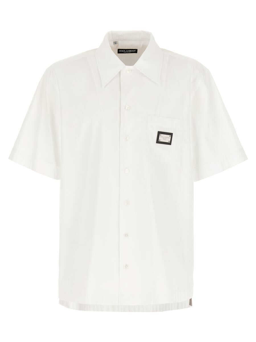 Cotton shirt, front pocket with logo plaque, button closure, short sleeves