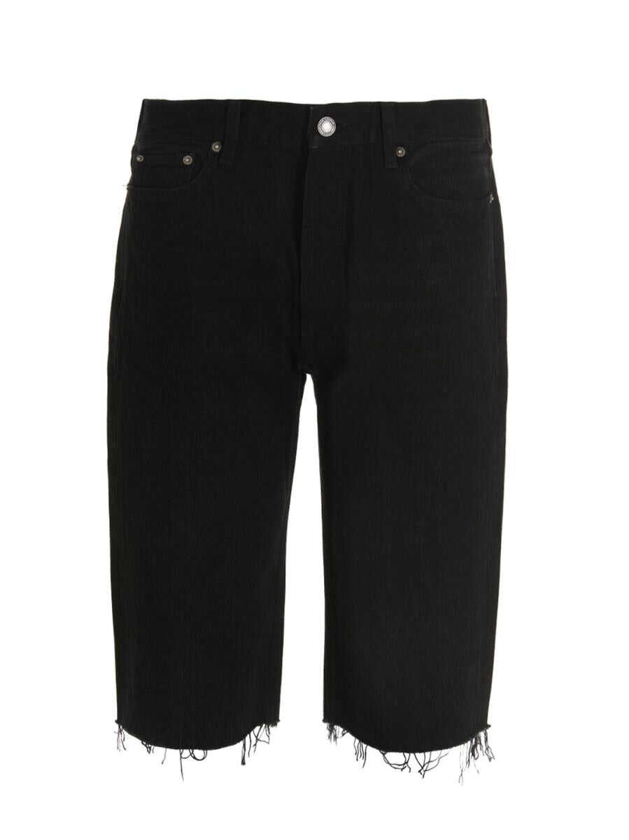 Bermuda in denim con orlo sfrangiato e chiusura bottoni