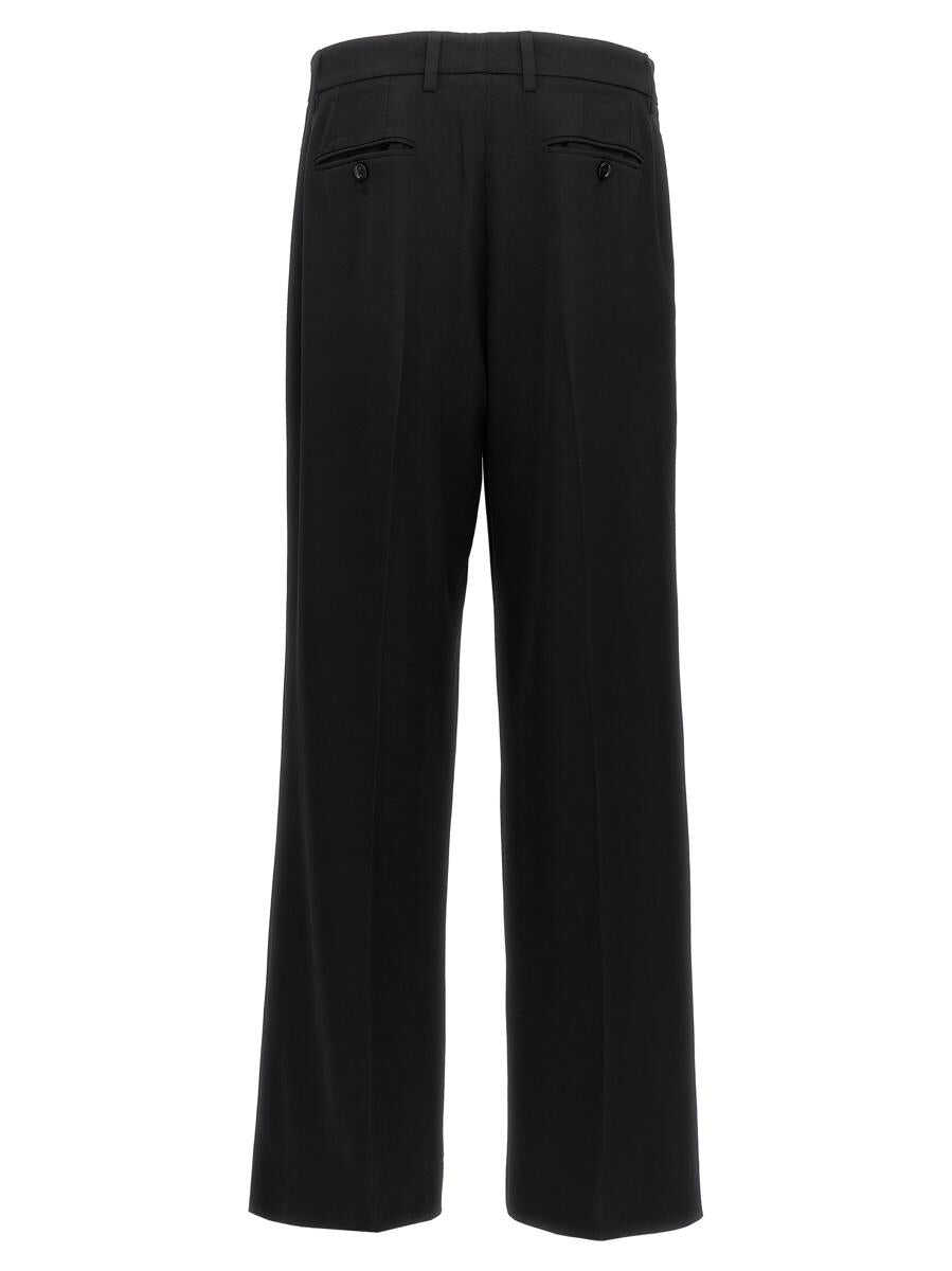 Flared pants in stretch wool canvas, pleats, zip and button closure, pockets