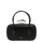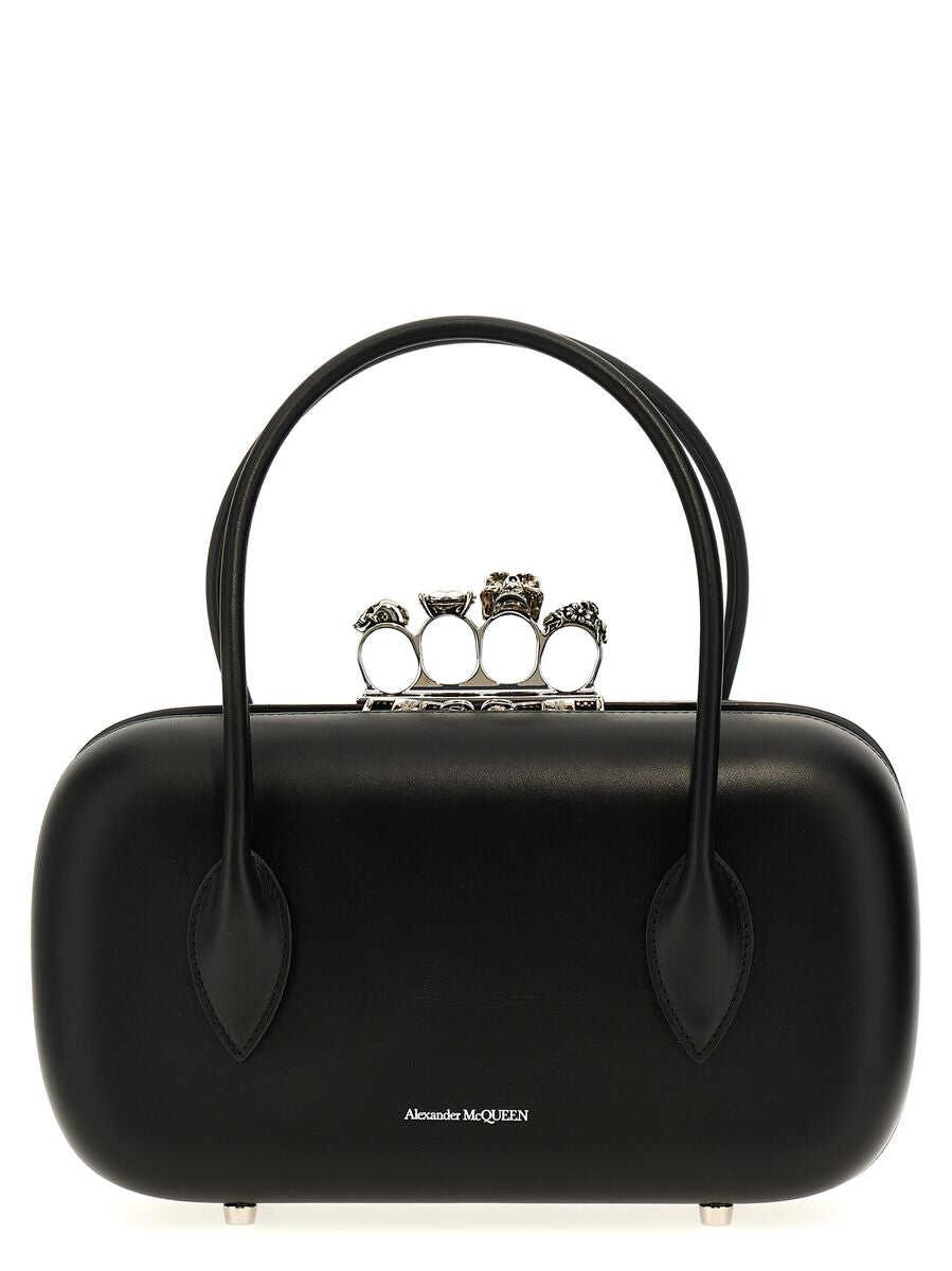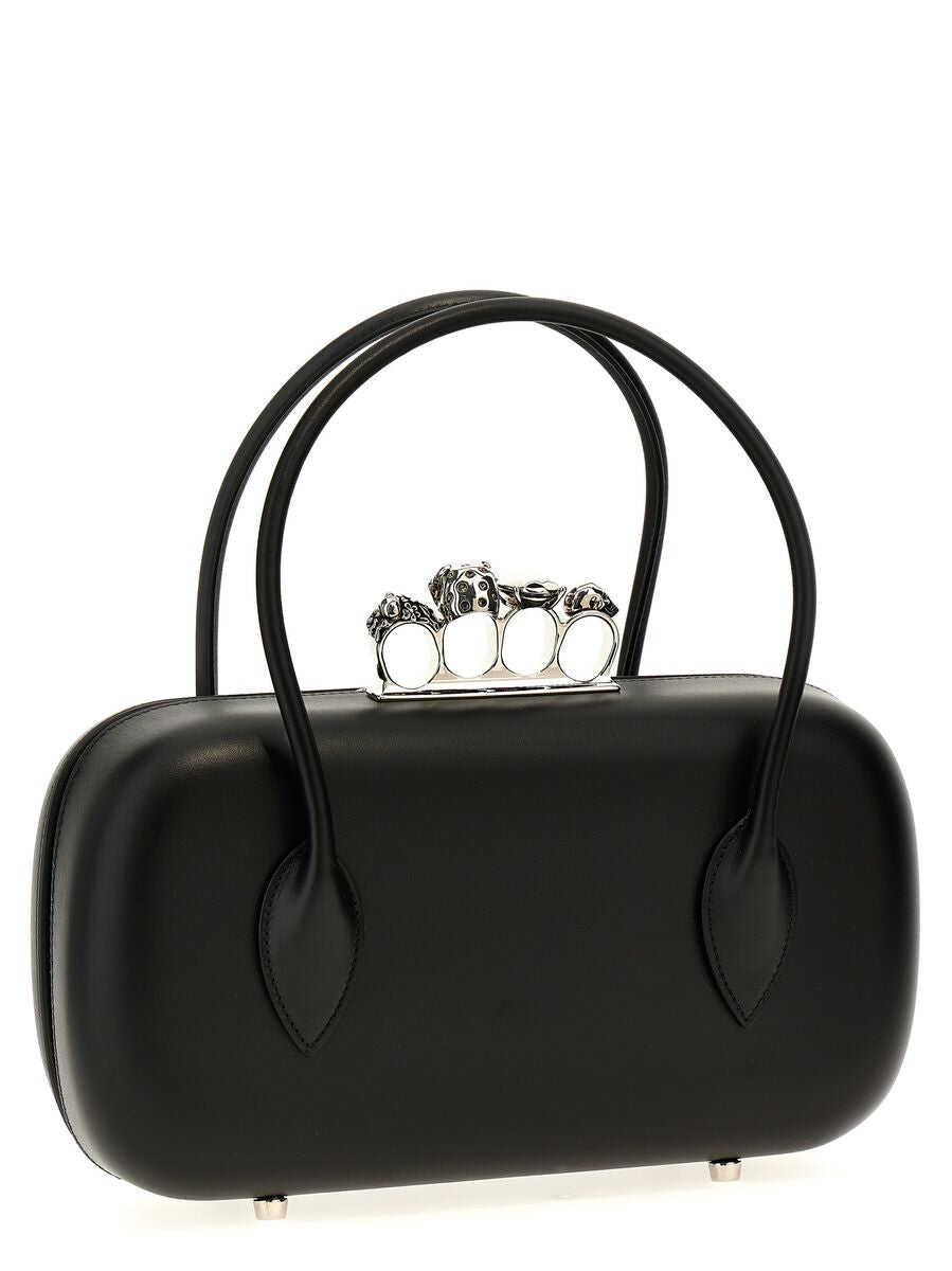 'The reverse' leather clutch with leather handle, metal ring handle decorated with crystals and zip opening