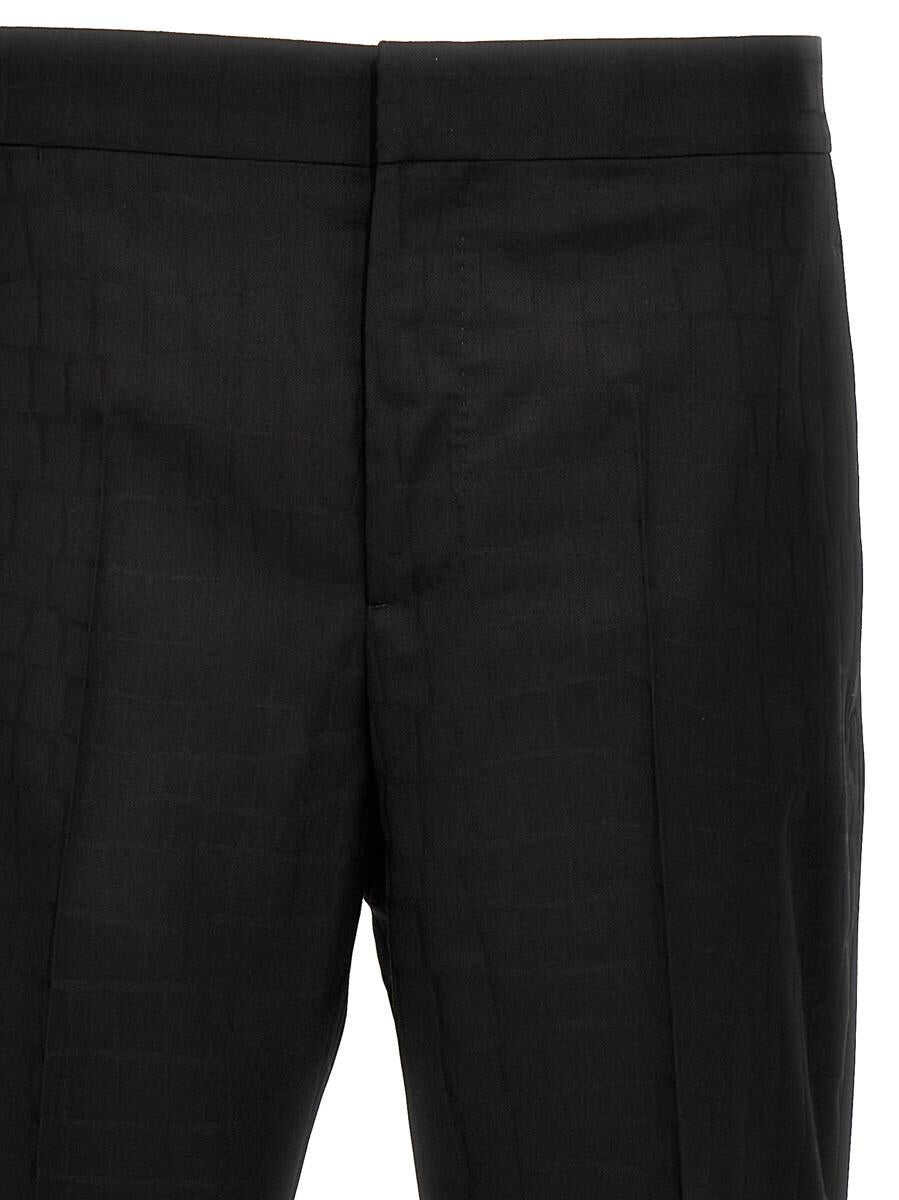 Crocodile-print jacquard wool trousers, zip and hook closure, pockets