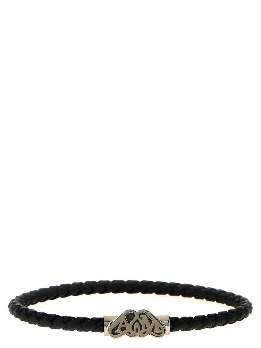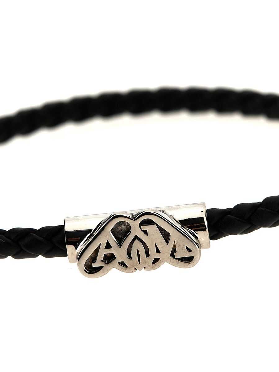 'Logo Seal' bracelet in braided leather with metal logo, magnetic closure