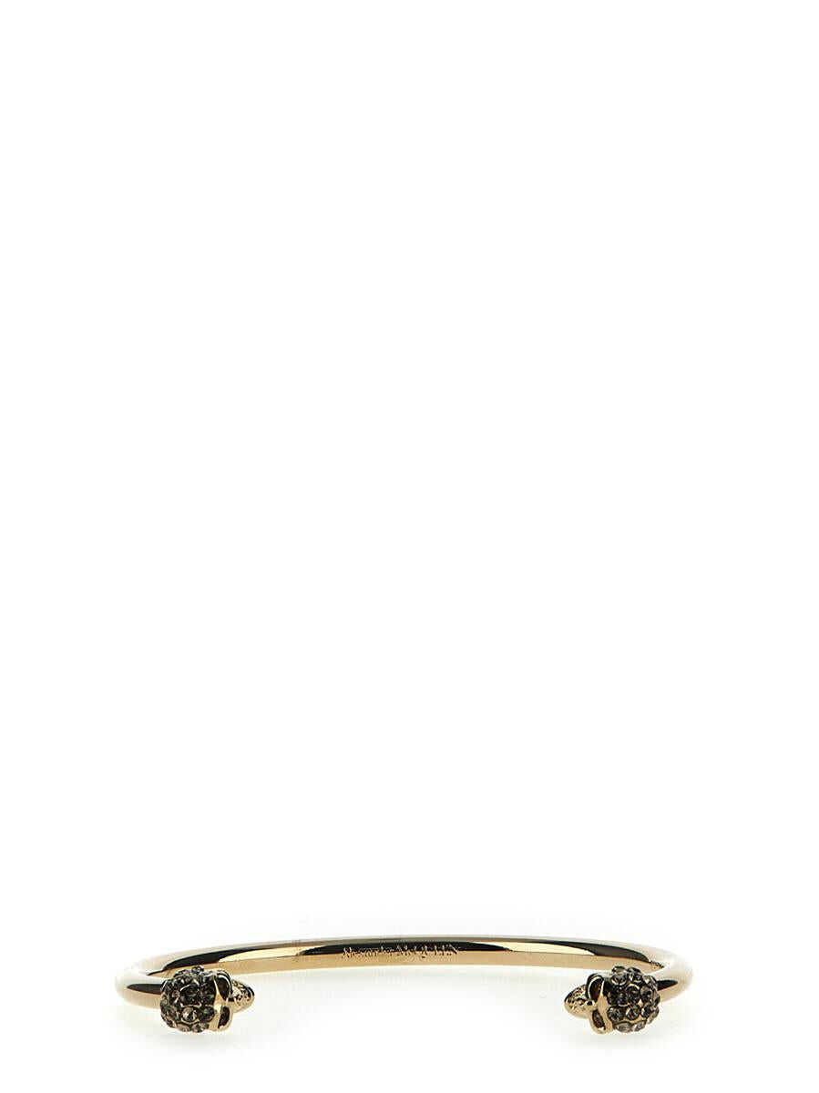 'Thin Twin Skull' bracelet in silver metal with crystal embellishment