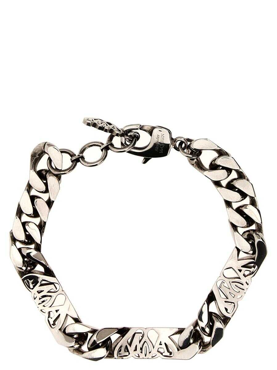'Logo Seal' chain bracelet with antiqued silver finish and openwork logo and snap hook closure with logo charm. Adjustable length