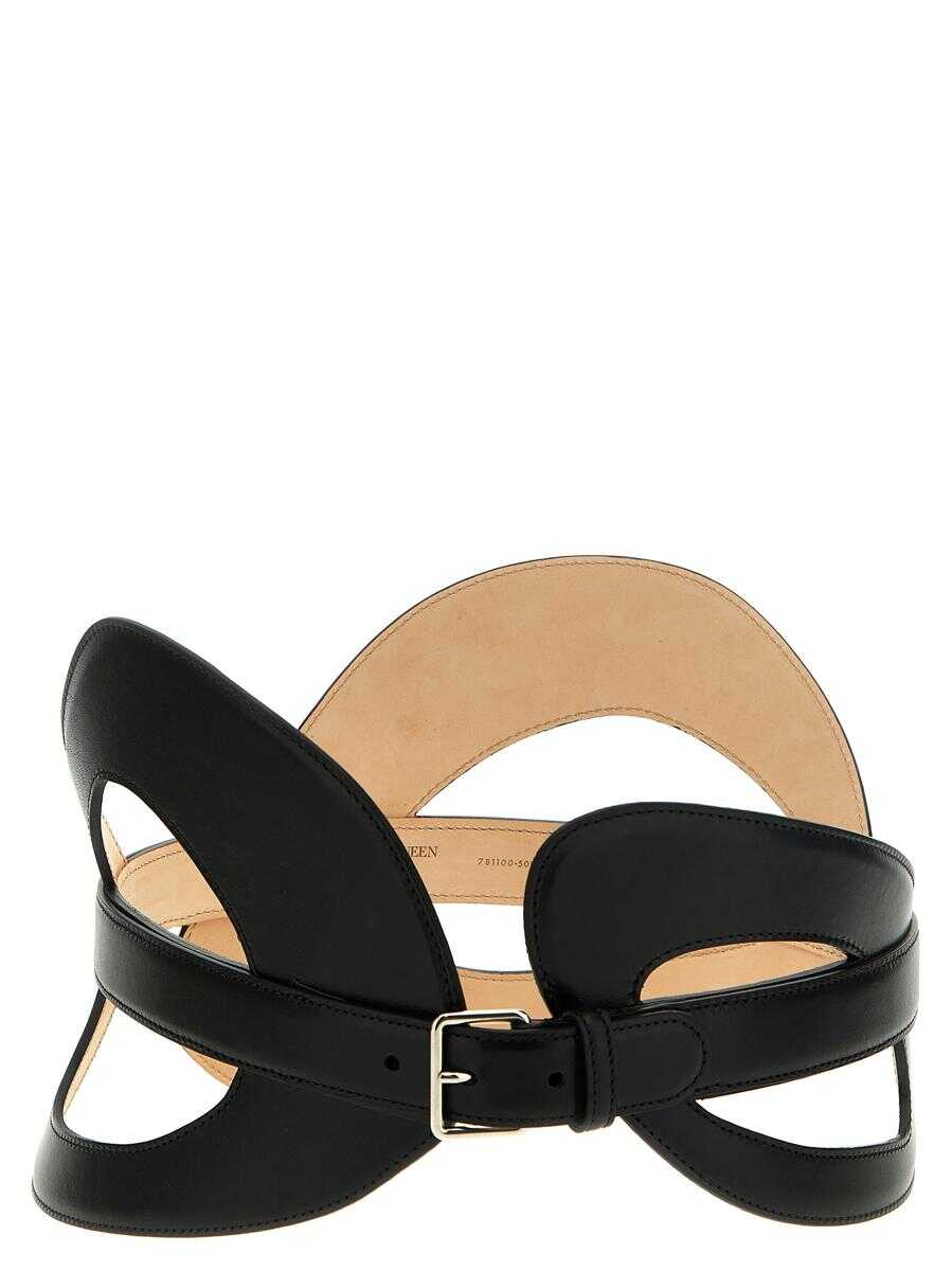 'Curved' leather belt with cut-out details and antique silver metal buckle