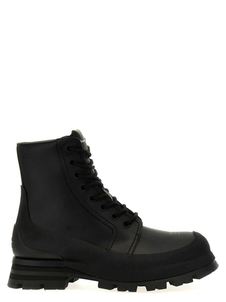 'Wander' rubberized leather ankle boots with laces, galoshe-style rubber detail with rubber sole