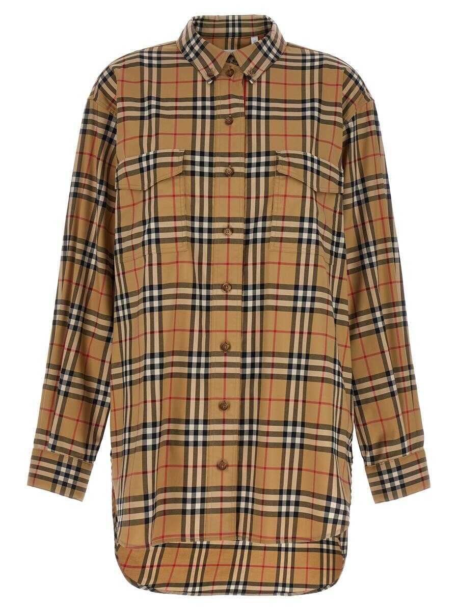 'Turnstone' cotton shirt with check print, front pockets, button closure, long cuffed sleeves