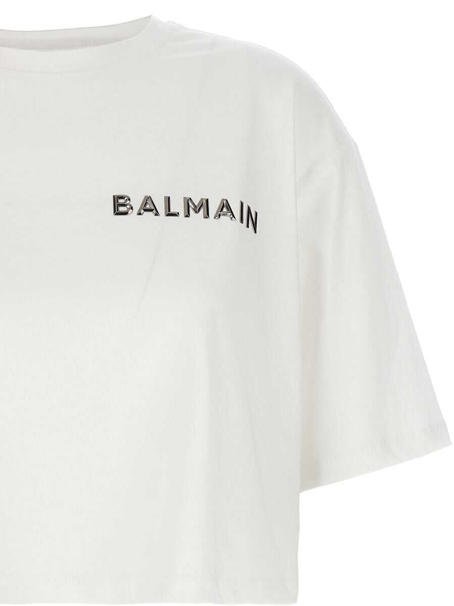 Cropped cotton T-shirt with front logo application, crew neck, short sleeves