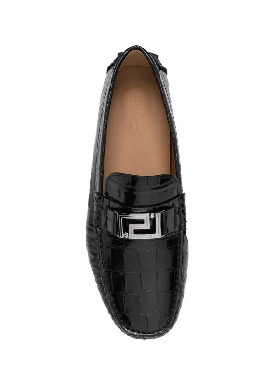 Coconut-print leather loafers with metal 'Greca' detail, rubber sole