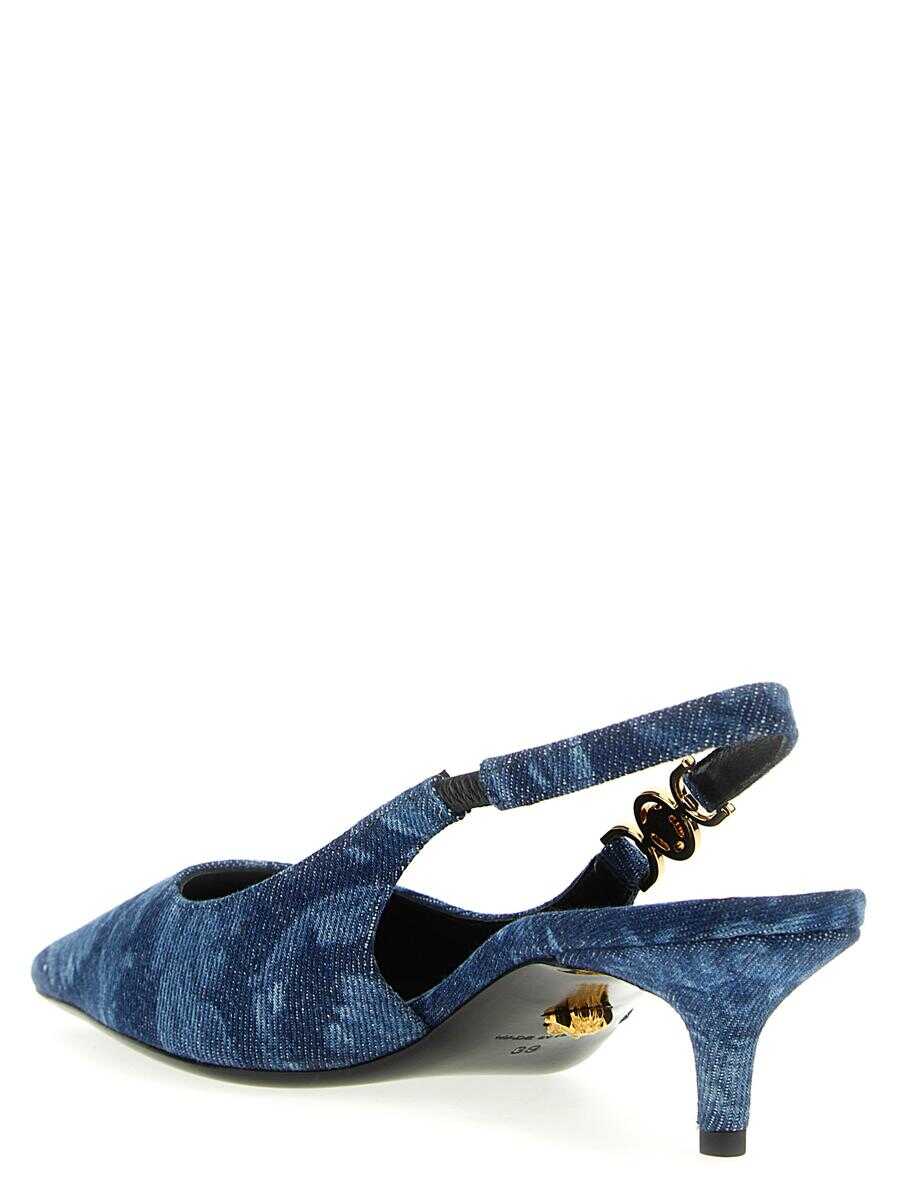 'Barocco' print denim pumps, Medusa detail on strap, low heel