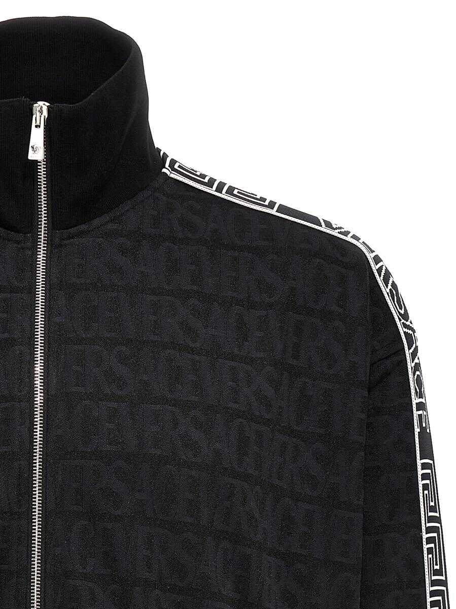 Tech fabric sweatshirt with all-over logo pattern, contrasting logo bands on the sleeves, pockets, zip closure, high neck, long cuffed sleeves