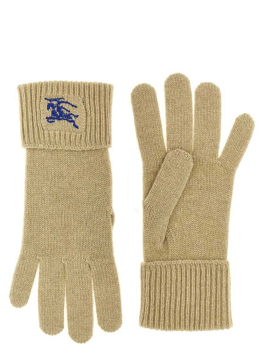 Ribbed cashmere gloves with 'Equestrian Knight Design' embroidered logo
